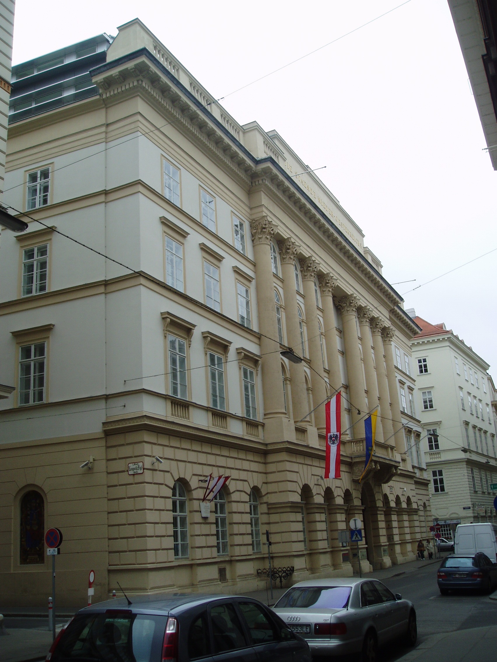 Nyilvános 1525 | 3251 | Herrengasse 13. Landhaus (a régi országház) | A hatalmas palota építési ideje nem ismert, de az 1500-as években már állt. Azóta többször átépítették, jelenlegi klasszicista köntösét 1832-48 között kapta. Ebben a palotában ült össze évszázadokon keresztül, I. Miksa uralkodása óta az alsó-ausztriai rendi gyűlés. Ma az alsó-ausztriai kormány hivatala. Klasszicista Festsaal-ja (ünnepi terem) nevezetes hangversenyek színhelye volt. Falai között megfordult Schubert, Beethoven, s itt adta első bécsi koncertjét egy 12 éves magyar csodagyermek, Liszt Ferenc. |