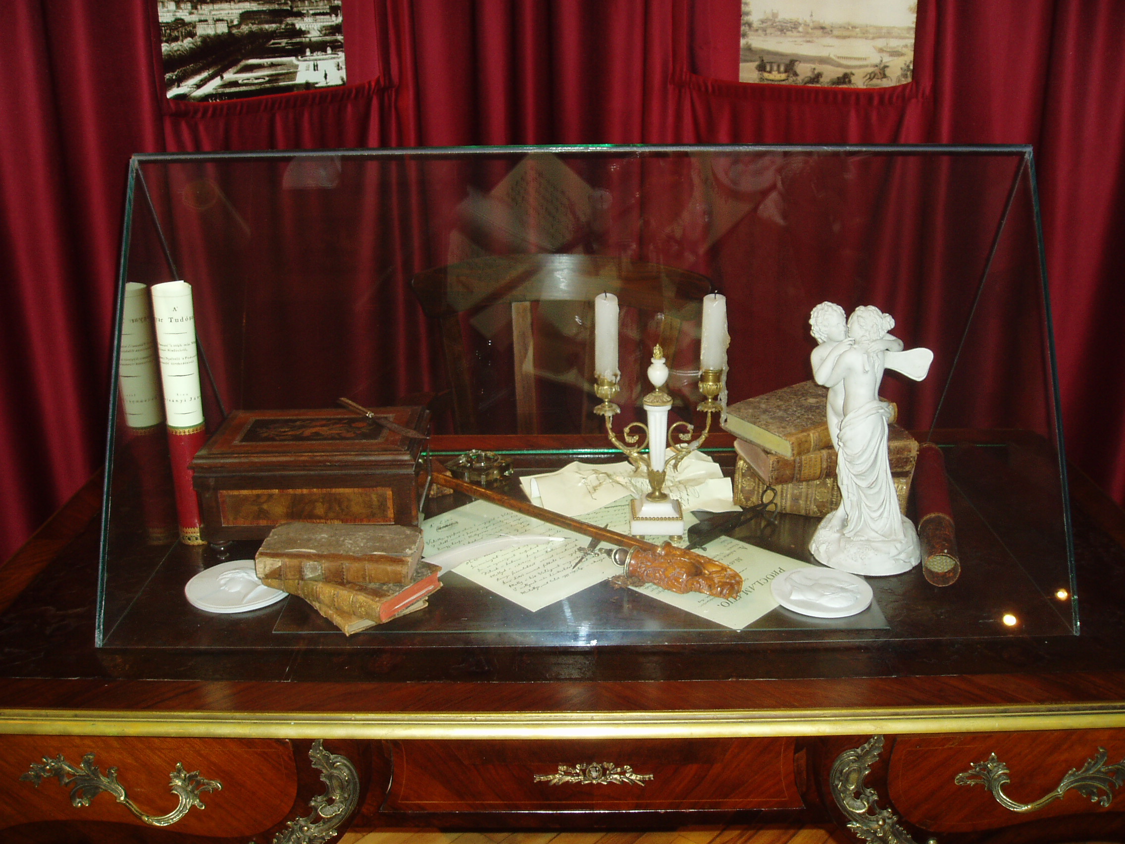 Nyilvános 1172 | 1847 | Tapolca: Templom domb 8. Múzeum | A múzeum épülete, az ún. Kántorház - a város védett építészeti emléke - Tapolca történelmi városközpontjában, a Malom-tó fölötti Templom dombon található. Ide járt elemi iskolába az 1770-es évek elején város nagy szülötte, Batsányi János költő. Részlet a Batsányi Emlékkiállításról: dolgozószoba-sarok. Az itt kiállított tárgyak konkrétan nem kötődnek Batsányihoz, csak korabeliek, illetve életének és pályájának főbb jellemzőit jelenítik meg. A Napóleon-plakett bonapartista irányultságát szimbolizálja. Ámor és Psyché szobra pedig feleségével,a bécsi származású költőnővel, Baumberg Gabriellával megélt és leélt múlhatatlan szerelem kifejezőjeként emlékeztet kettőjük kapcsolatára. A felvétel 2007 februárjában készült. Felh. irod.: Látnivalók Veszprém megyében. Miskolc, Well-PRess, 2000 Hangodi László: Múltbanéző - kiállításvezető a Tapolcai Városi Múzeum tárlataihoz. Tapolca, 2006 |