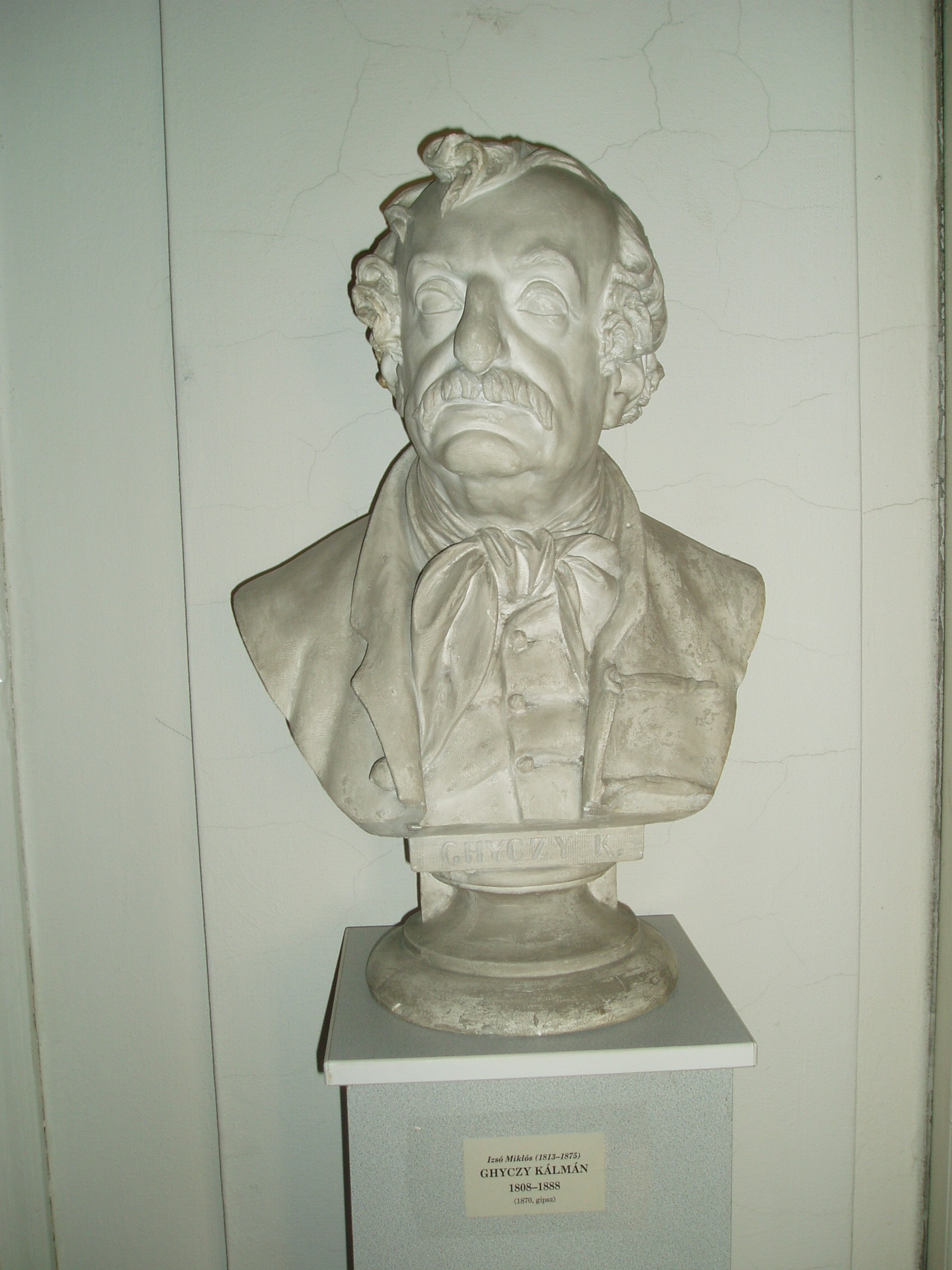 Nyilvános 1138 | 1893 | Pápa, Március 15. tér 9. Pápai Református Kollégium Gimnáziuma | A híres pápai Református Kollégium első épülete 1531 és 1752 között a mai Ruszek közben, a Lábasház épületének helyén állott. 1752-ben - Mária Terézia rendeletének következtében, amely megszüntette a szabad vallásgyakorlást - harminckét évig csak a közeli Adásztevelen működhetett. 1784-ben, II. József türelmi rendeletének köszönhetően térhetett vissza az iskola Pápára, s hamarosan felépült a ma Ókollégiumként ismert épület (lásd: Pápa, Petőfi u. 13.), amelyben 1794-ben indulhatott meg az oktatás. Az intézmény 1857-ig működött ott, ekkor átköltözött a Március 15. tér 13-15. számú házba, az ún. Nátus-ba, majd 1895-ben utolsó végleles helyére, ide, a Március 15. tér 9. számú monumentális új épületbe. A képen - a könyvtár előterében - Ghyczy Kálmán (1808-1888) jogtudós, pénzügyminiszter fehér márvány mellszobra látható, Izsó Miklós 1870-ben készült alkotása. A fénykép 2007 áprilisában készült. Felh. irod.: Németh Adél - Szabó Lajos: Pápa. Bp. Panoráma, 1989 http://refi-papa.hu |