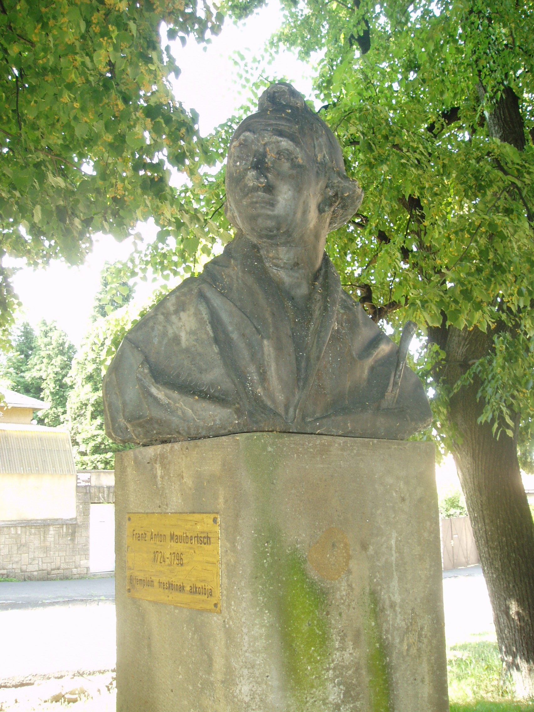 Nyilvános 1120 | 1668 | Sümeg, Bíró Márton utca 1. Plébániatemplom | Sümeg egyik legszebb épülete az Urunk mennybemenetele tiszteletére emelt római katolikus templom. Ezen a helyen már a XIV. században templom állott, melyet Padányi Bíró Márton lebontatott, és 1756-1759 között építtette fel a mai barokk plébániatemplomot. Építészetileg a barokk stílus általános, megszokott mintáit mutatja: nyugati főhomlokzatát hatalmas falpillérek díszítik, fölötte háromrészes főpárkány húzódik, a középrészben az építtető püspök címerével. Az épület igazi értékét Franz Anton Maulbertsch falfestményei jelentik, amelyek az egész templombelsőt beborítják. Nem véletlenül nevezik a templomot a rokokó Sixtus-kápolnájának. A templom előtti kis parkban állították fel az építtető püspök és a festőművész mellszobrait, mindkettő Marton László alkotása. A képen Franz Anton Maulbertsch (1724-1796) szobra látható. A fénykép 2007 júniusában készült. Felh. irod.: Koppány Tibor - Kozák Károly: Sümeg útikalauz. Veszprém, Idegenforgalmi Hivatal, 1965 Látnivalók Veszprém megyében. Miskolc, Well-PRess, 2004 Sümegi kalauz. Sümeg, Sümegi Fórum Alapítvány, 1993 |