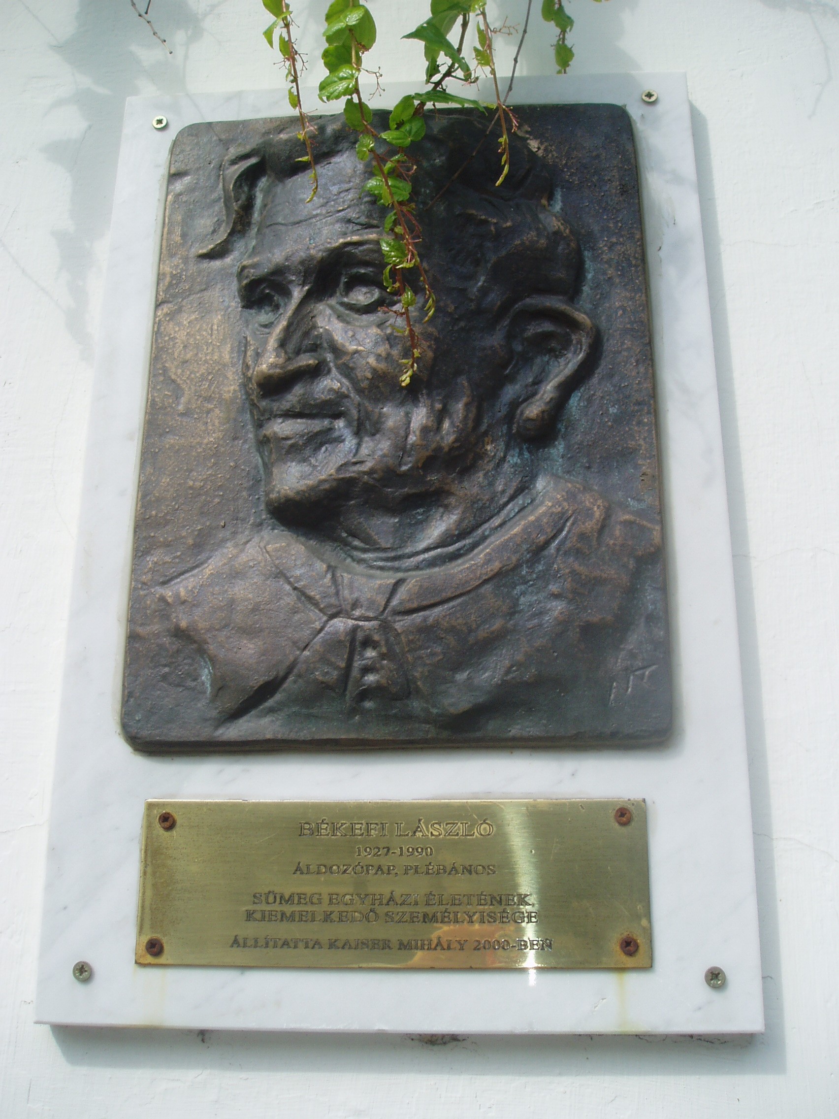 Nyilvános 1175 | 2036 | Sümeg, Panteonfal. Békefi László emléktáblája | A Kisfaludy téren, Kisfaludy Sándor szülőháza előtt alakították ki Sümeg Panteonfalát. A képen Békefi László emléktáblája látható. Békefi László (Celldömölk, 1927. júl. 30. – Sümeg, 1990. márc. 13.) prépost. 1952-ben, Veszprémben szentelték pappá. Két évig Buzsákon, egy esztendeig Búcsúszentlászlón, 1955–1957 között Sümegen káplán. Veszprémben püspöki helytartó, püspöki titkár, majd templomigazgató. 1961-től Sümegen plébános, 1963 után a kerület vezető esperese, 1973-tól prépost. A város mindkét templomát felújíttatta, a plébániatemplom központi fűtést kapott. A Máltai Lovagrend segítségével munkálkodott a várbeli kápolna felújításán. Tagja volt a városi Hazafias Népfrontbizottságnak, a Városvédő- és Szépítő Egyesületnek. 1994-ben – posztumusz – Sümeg város díszpolgára címet kapta. A fénykép 2007 júniusában készült. Felh. irod.: Koppány Tibor - Kozák Károly: Sümeg útikalauz. Veszprém, Idegenforgalmi Hivatal, 1965 Látnivalók Veszprém megyében. Miskolc, Well-PRess, 2004 Veszprém megyei életrajzi lexikon. Veszprém, Veszprém Megyei Önkormányzat Közgyűlése, 1998 |