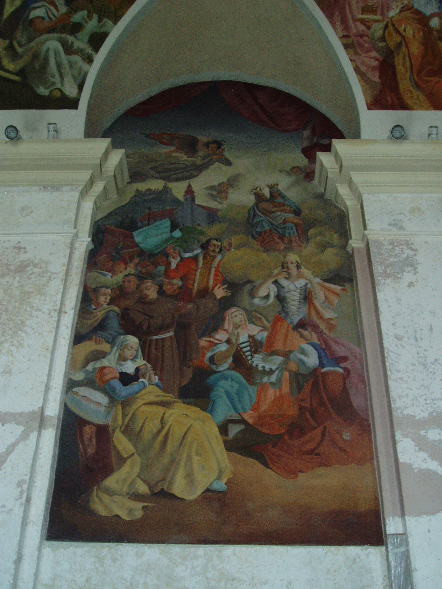 Nyilvános 1160 | 2236 | Sümeg, Szent István tér 7. Ferences templom | A ferences kolostor és templom épülettömbje a vár után (lásd: Sümeg, Vár) Sümeg legrégibb műemléke. A ferences atyákat a XVII. közepén Széchenyi György püspök hozta Sümegre a török elől idemenekült lakosság kedvéért. 1649 körül először az egyhajós, akkor még torony nélküli templom épült meg. A hozzá tartozó vastag falú, erődítmény jellegű kolostor néhány évvel később lett készen. A templom tornya és két oldalkápolnája 1724-33 között épült. Kiemelkedő értéket képvisel a két oldalkápolna kovácsoltvas kapuzata. (Sajnos, a templomot kívülről nem tudtam lefényképezni, szinte teljesen eltakarják a lombok. Talán majd egyszer télen... K. K.) Itt működött a XVII. századi ellenreformáció egyik fontos dunántúli központja. A szerzetesek járták a végvárakat és falvakat, s fejtettek ki térítő, illetve szociális tevékenységet, a kolostorban pedig messze vidéken híres hitvitákat tartottak. A lakosság kedvelte a ferences atyákat, akik a szegénység vállalása mellett a tudomány művelői, egyes tagjaik pedig a haza védelmében vitéz kardforgatók voltak. A templomot 1699 óta kegytemplomként is számon tartják. Ebben az évben ugyanis itt gyógyult meg a bécsi Berghoffer Mária, s a gyógyulást a templom főoltárán elhelyezett, a XVI. század elején faragott Pieta-szobornak tulajdonították. A képen e csodás gyógyulást ábrázoló újabb kori festmény látható. E szobor, mely a XVIII. században lebontott Szent Katalin-templomból származik, tűzvész következtében többször is megsérült, s helyreállításra szorult. A fénykép 2007 júniusában készült. Felh. irod.: Koppány Tibor - Kozák Károly: Sümeg útikalauz. Veszprém, Idegenforgalmi Hivatal, 1965 Látnivalók Veszprém megyében. Miskolc, Well-PRess, 2004 Sümegi kalauz. Sümeg, Sümegi Fórum alapítvány, 1993 Hőgyész László: Sümeg évszázadai. Veszprém, 1989 |
