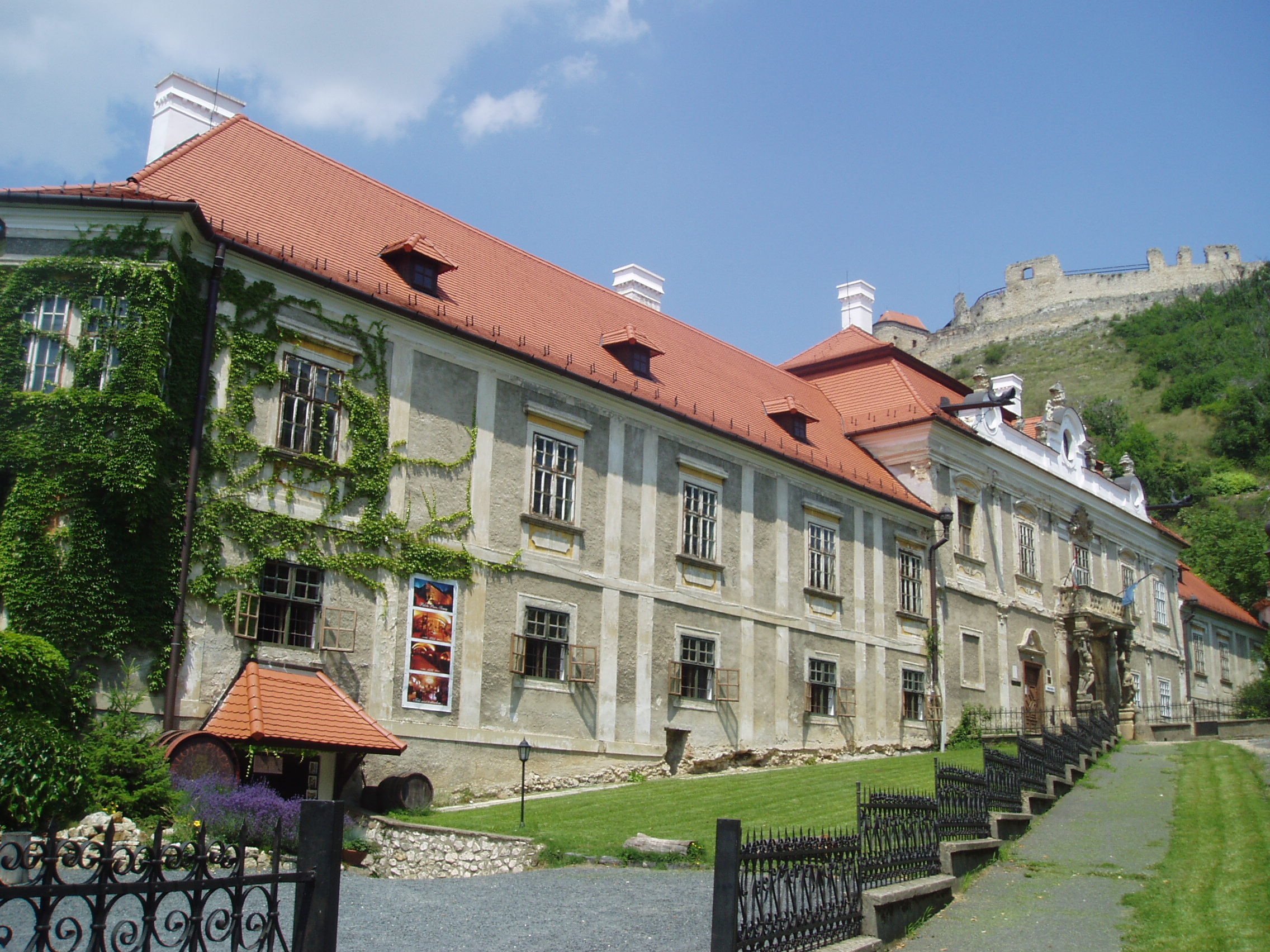 Nyilvános 1081 | 1670 | Sümeg, Szent István tér 10. Püspöki palota | A város egyik legszebb épülete az 1748 és 1755 között emelt püspöki palota. Építtetője Padányi Bíró Márton, aki 1745-ben lett veszprémi püspök, aki élete végéig nagyrészt Sümegről irányította az egyházmgye életét. Sümegen is hunyt el 1762. augusztus 16-án, 67 éves korában. Az épület a domborzati viszonyokat követve egy részében földszintes, nagyobb részében viszont emeletes. Középen a barokk építészet szabályai szerint kiemelt, díszesebb, az íves főkaput tartalmazó épületrész látható. A főkapu felett lévő faragott kőmellvéd erkélyt Atlasz-figurák tartják. A főpárkány alatt helyezték el az építtető püspök gazdagon díszített címerét. Az épület ebédlőjében és kápolnájában a falképek Vogl György, a stukkók Antonio Orsatti 1750-ben készült barokk stílusú alkotásai; a szobák stukkódíszítése és falburkolata szintén barokk stílusú. A palotát 1830 körül klasszicista stílusban átalakították. A fénykép 2007 júniusában készült. Felh. irod.: Koppány Tibor - Kozák Károly: Sümeg útikalauz. Veszprém, Idegenforgalmi Hivatal, 1965 Látnivalók Veszprém megyében. Miskolc, Well-PRess, 2004 Sümegi kalauz. Sümeg, Sümegi Fórum alapítvány, 1993 Hőgyész László: Sümeg évszázadai. Veszprém, 1989 |