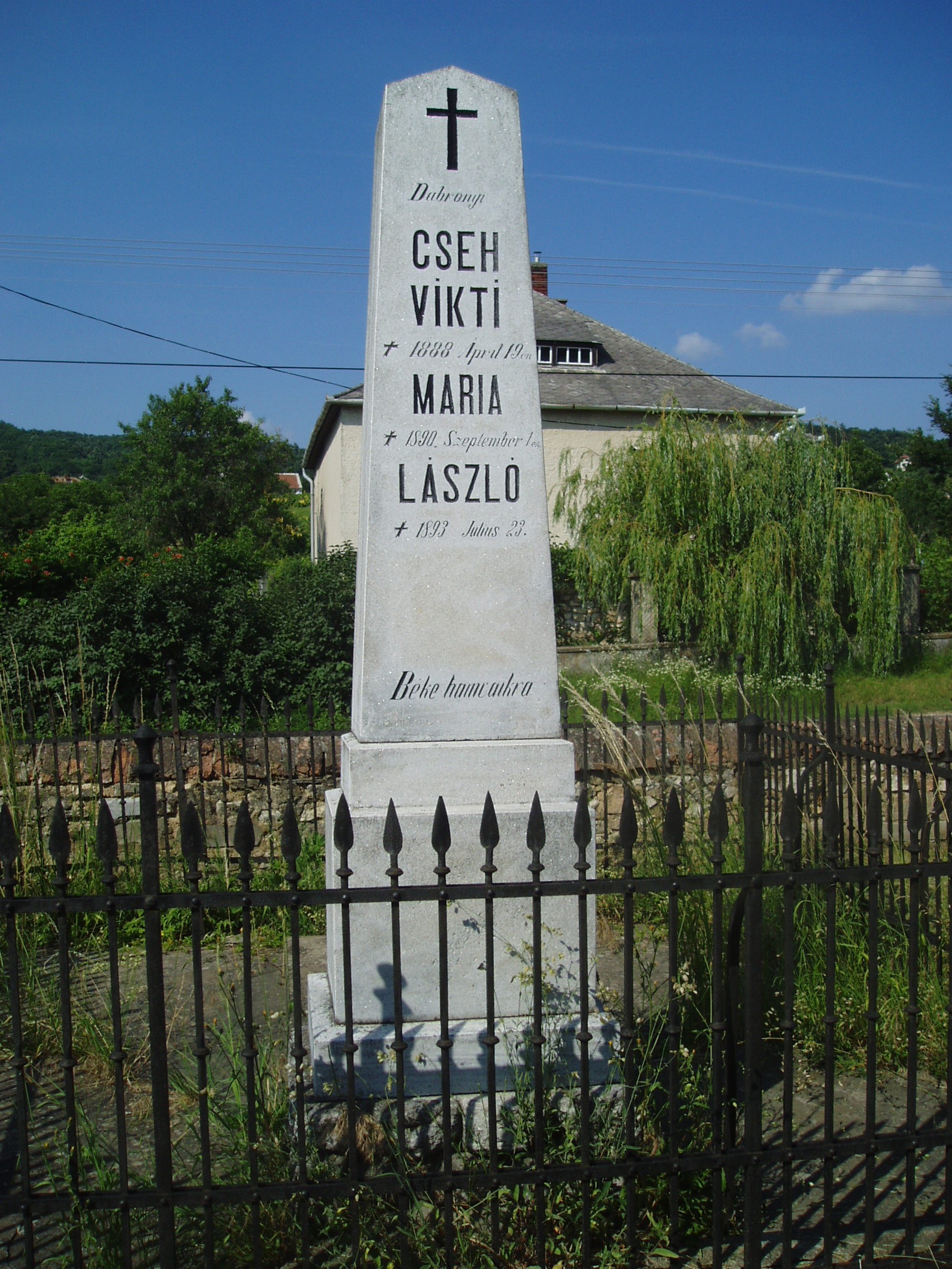Nyilvános 1127 | 1782 | Sümeg, Temető. Cseh László sírja | Sümeg délkeleti határában, a Tapolcára vezető út mellett emelkedő lankás domboldalon találjuk a város köztemetőjét. Helyét még Bíró Márton püspök jelölte ki; jelentősebb számban a XIX. század eleje óta kezdtek ide temetkezni. A temetődomb tetején áll az 1816-ban épített, későbarokk stílusú temetőkápolna. Körülötte a sümegi élet utolsó két évszázada szinte valamennyi híres személyiségének sírja fellelhető. Itt nyugszik Cseh László (1818-1893), Sümeg köztiszteletben álló, utolsó táblabírája, Kisfaludy Sándor barátja. A fénykép 2007 júniusában készült. Felh. irod.: Koppány Tibor - Kozák Károly: Sümeg útikalauz. Veszprém, Idegenforgalmi Hivatal, 1965 Sümegi kalauz. Sümeg, Sümegi Fórum Alapítvány, 1993 Miklósi-Sikes Csaba: Kőbe vésett történelem. A sümegi városi temetők története és sírjelei 1950-ig. Sümeg, Sümegi Fórum Alapítvány, 2002 Veszprém megyei életrajzi lexikon. Veszprém, Veszprém Megyei Önkormányzat Közgyűlése, 1998 |
