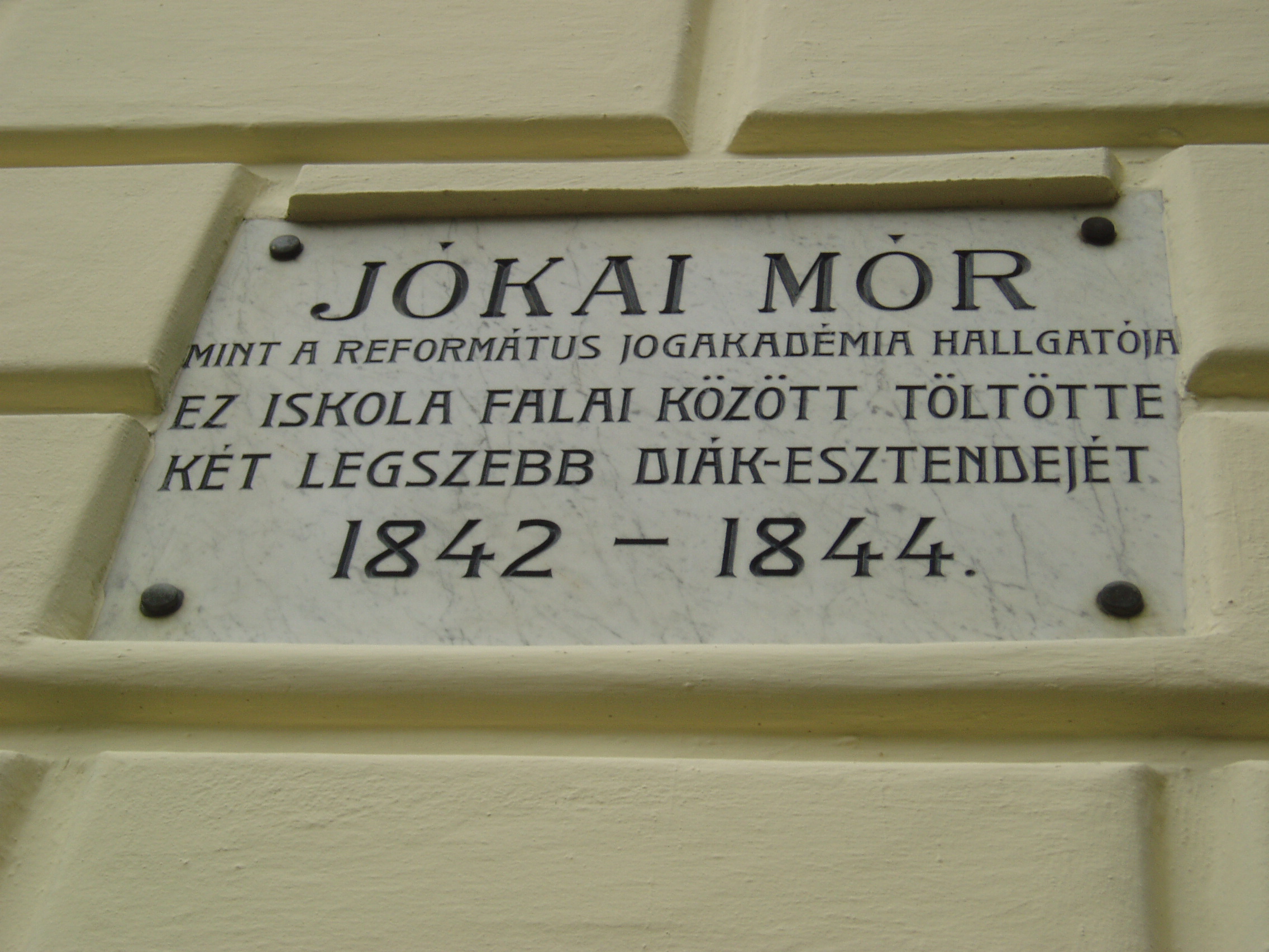 Nyilvános 1233 | 2162 | Kecskemét, Kálvin tér 1. Ókollégium | A monumentális Ókollégium, a volt jogakadémia a XIX. század elején épült klasszicista stílusban Hofrichter József tervei szerint. Kiváló diákja volt 1842-44-ben Jókai Mór, akit ebben az épületben Petőfi is meglátogatott, amikor egy vándor színtársulat tagjaként Kecskeméten időzött. Ma itt működik a Károlyi Gáspár Református Egyetem Állam- és Jogtudományi Kara, és itt kapott helyet a Ráday Múzeum. A fénykép 2006 augusztusában készült. Felh. irod.: Heltai Nándor: Kecskemét. Kecskeméti Lapok, 1998 |