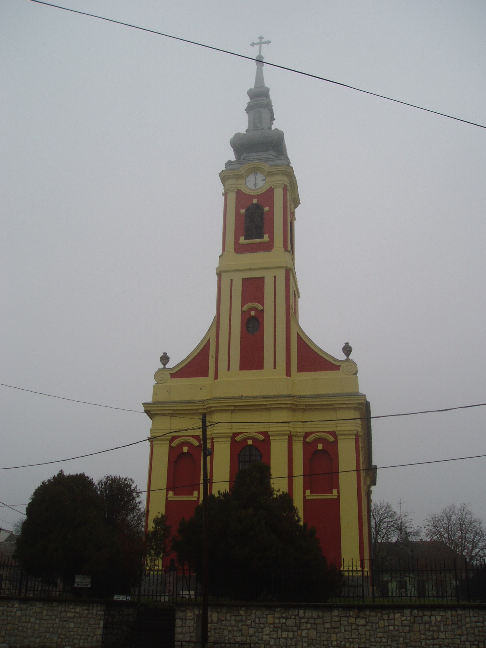 Nyilvános 1186 | 2124 | Baja, Táncsics utca 21. Szent Miklós görögkeleti plébániatemplom | A bajai szerbek három templomából kettő maradt fenn. Közülük ez az épület, a Szent Miklós tiszteletére emelt templom a régebbi (a másik templomot lásd: Baja, Batthyány u. 9.). Mai, későbarokk stílusát az 1779-ben történt átalakítása során nyerte el. Homlokzati tornyán copf füzérdísz és díszes jón pillérek láthatók. Eredeti berendezéséből fennmaradt az ikonosztáz, a püspöki trónus és A. Teodorovity belgrádi ikonfestő 1793-ban készült festményei. A fénykép 2007 októberében készült. Felh. irod.: Látnivalók Bács-Kiskun megyében. Miskolc, Well-PRess, 2002 |