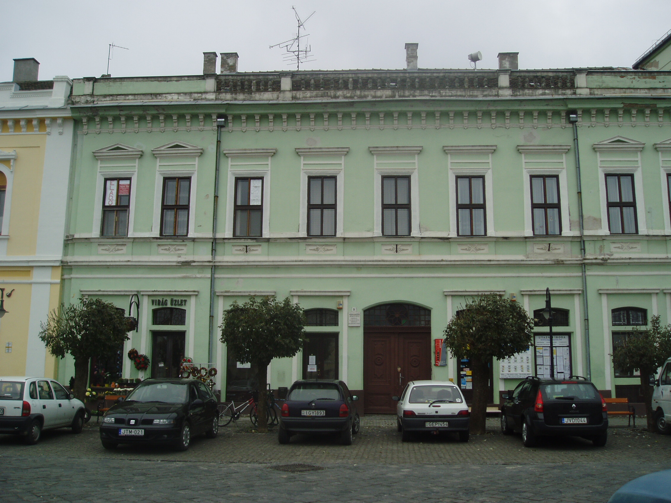 Nyilvános 1154 | 1937 | Baja, Szentháromság tér 5. | A bajai Szentháromság teret magyarországi Szent Márk térként emlegetik. Értékét nemcsak épületei, hanem kövezete is adja. A teret, amely három oldalról beépített, s nyitott negyedik oldala a Sugovicára néz, lóhere formában keresztezik az utak. A teret városképi jelentőségű épületek veszik körül. A 5. házszámú, klasszicista eredetű városi palotát 1870 körül építették újjá eklektikus stílusban. A fénykép 2007 októberében készült. Felh. irod.: Látnivalók Bács-Kiskun megyében. Miskolc, Well-PRess, 2002 |
