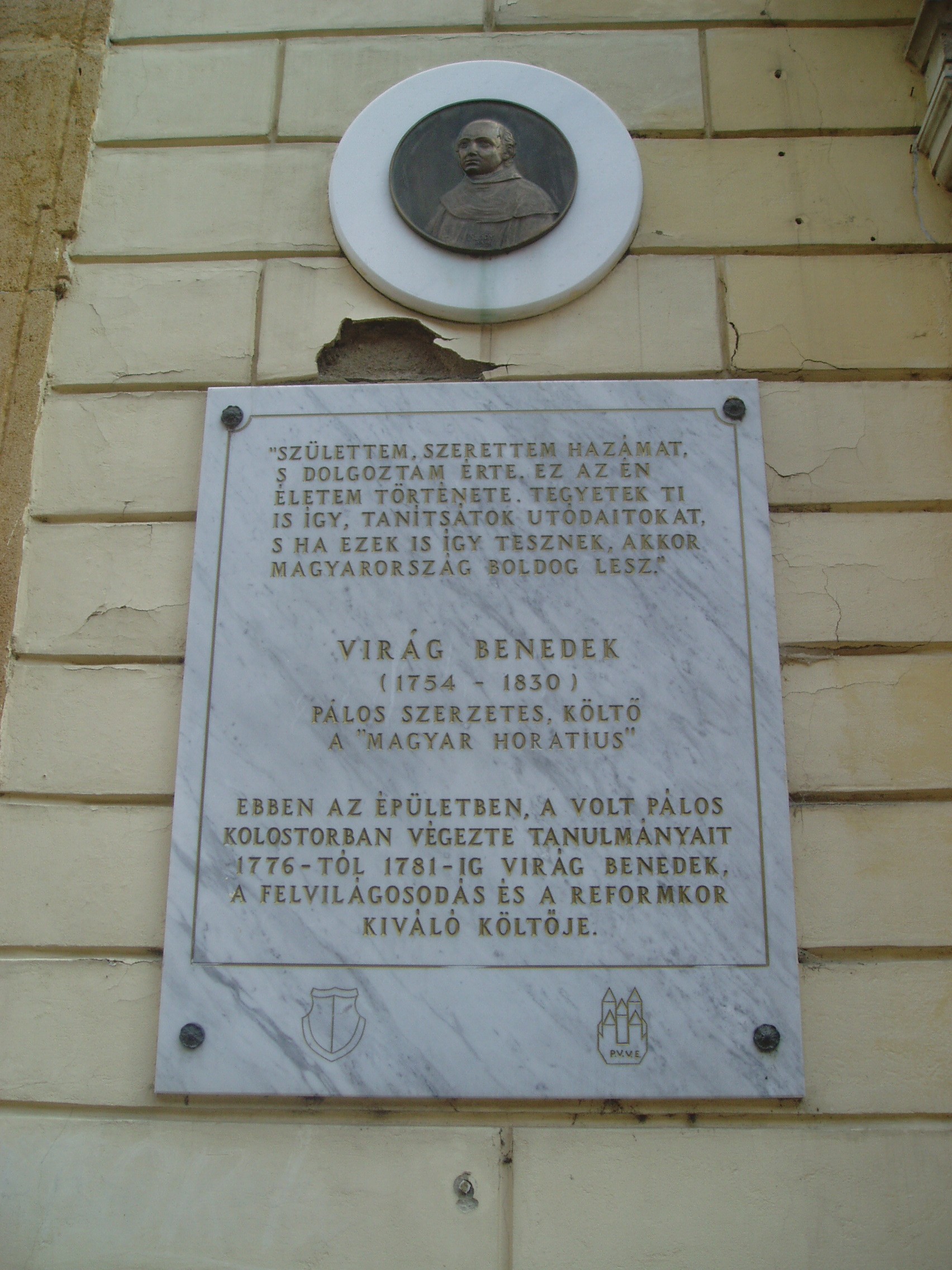 Nyilvános 1151 | 1768 | Pécs, Király utca 44. | A volt pálos kolostor a mellette ma is álló templommal a XVIII. század közepén épült s Pécs egyik legjelentősebb barokk műemlékegyüttese. Mint a homlokzatán elhelyezett emléktáblán olvasható, 1776-81 között itt végezte iskoláit Virág Benedek költő. A fénykép 2006 júliusában készült. Felh. irod.: Csorba Csaba: Pécs. Bp. Panoráma, 1983 |