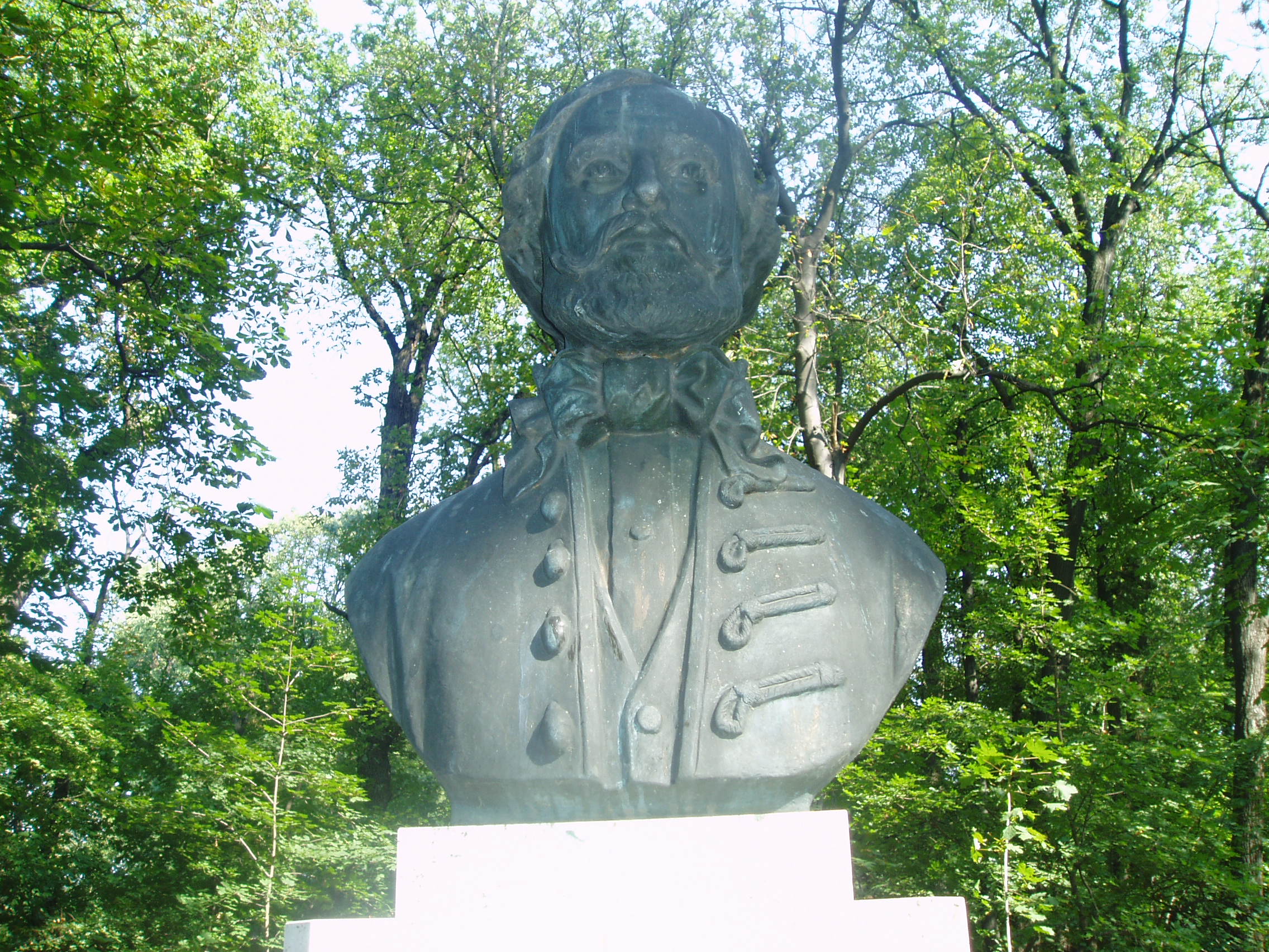Nyilvános 1456 | 3299 | Sárospatak, Iskolakert: Egressy Béni szobra | A Református Kollégium (lásd: Sárospatak, Rákóczi u. 1.) bejáratával szemben találjuk az Iskolakertnek nevezett parkot. Az 1980-as években természetvédelmi területté nyilvánított Iskolakert sajátos nemzeti érték, mely egyedülálló az országban. Sétányai mentén Patakhoz kötődő jeles személyiségek szobrai állnak. A képen Egressy Béni bronz mellszobra látható. Kelemen Kristóf alkotását 1989-ben, a Szózat zeneszerzője születésének 175. évfordulója alkalmából avatták fel. Talapzatán hangjegyekkel és szöveggel a Szózat első két sora látható. Egressy Béni 1828–1831 között volt a kollégium diákja. Szobrának felállítását Béres Ferenc (1922–1996) énekművész kezdeményezte; ma már az ő szobra is az Iskolakertben áll, ugyanezen az oldalon. A fénykép 2007 augusztusában készült. Felh. irod.: Látnivalók Borsod-Abaúj-Zemplén megyében. Miskolc, Well-PRess, 1995 www.sarospatak.hu/nevezetessegek |