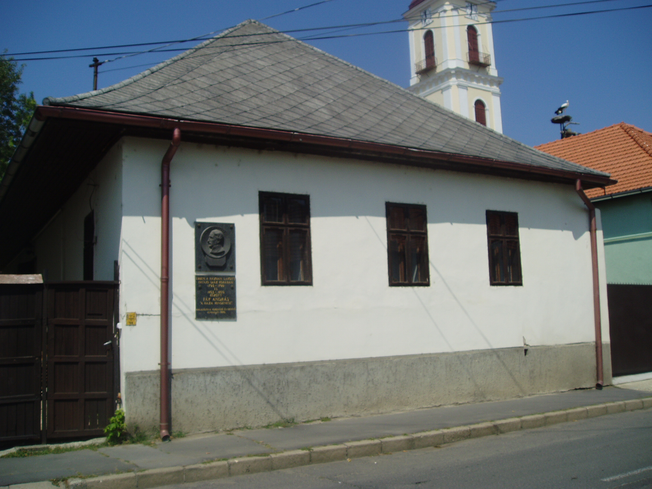 Nyilvános 1096 | 1760 | Sárospatak, Kossuth utca 22. | A homlokzatán 1990-ben elhelyezett emléktábla tanúsága szerint ebben a házban lakott pataki diák korában, 1793-1799 és 1803-1805 között Fáy András, "a haza mindenese", Alakját az Iskolakertben mellszobra idézi (lásd: Sárospatak, Iskolakert: Fáy András). A fénykép 2007 augusztusában készült. |