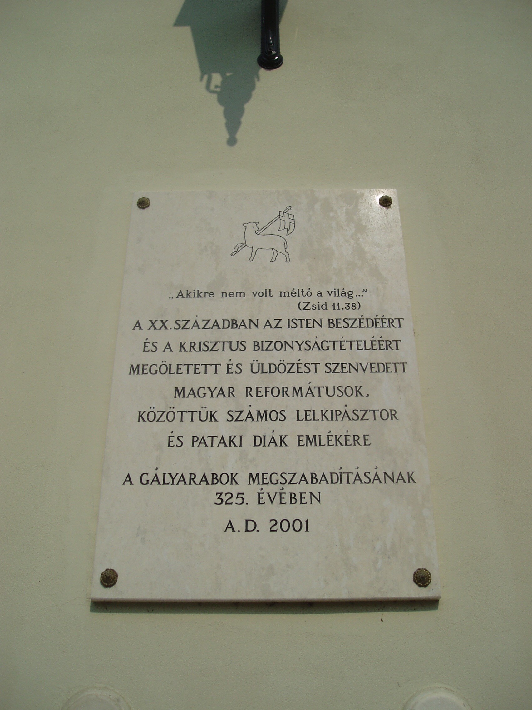 Nyilvános 1091 | 1587 | Sárospatak, Rákóczi utca 1. Református Kollégium | A kollégium főépülete, a Nagy Kollégium a Rákóczi út északi végén található, mely 1804–1814 között korai klasszicista stílusban épült. Szép ráccsal ellátott, háromíves nyílású kapuzat vezet be az un. „nagyportá”-ba, amelyet két sor vaskos pillér három hajóra oszt. Kétoldalt a falakon az iskolatörténet néhány fontosabb eseményének, illetve a kollégium nagy alakjainak bronz domborművű ábrázolásait helyezték el. A képen látható feliratos táblát az egykori gályarab pataki diákok megszabadításának 325. évfordulóján, 2001-ben állították. 1673-ban, a Wesselényi-összeesküvés (lásd: Sárospatak, Szent Erzsébet u. 19. Sub Rosa) leleplezése után I. Lipót császár református papokat és tanítókat ítélt gályarabságra. Közülük huszonketten pataki diákok voltak. Az ellenreformáció áldozatait 1676. február 11-én Ruyter holland admirális váltotta ki a rabságból és küldte haza (lásd még: Hajdú-Bihar megye/Debrecen, Emlékkert). A fénykép 2007 augusztusában készült. Felh. irod.: Détsy Mihály: Sárospatak. Bp. Corvina, 1974 Látnivalók Borsod-Abaúj-Zemplén megyében. Miskolc, Well-PRess, 1995 www.sarospatak.hu/nevezetessegek |