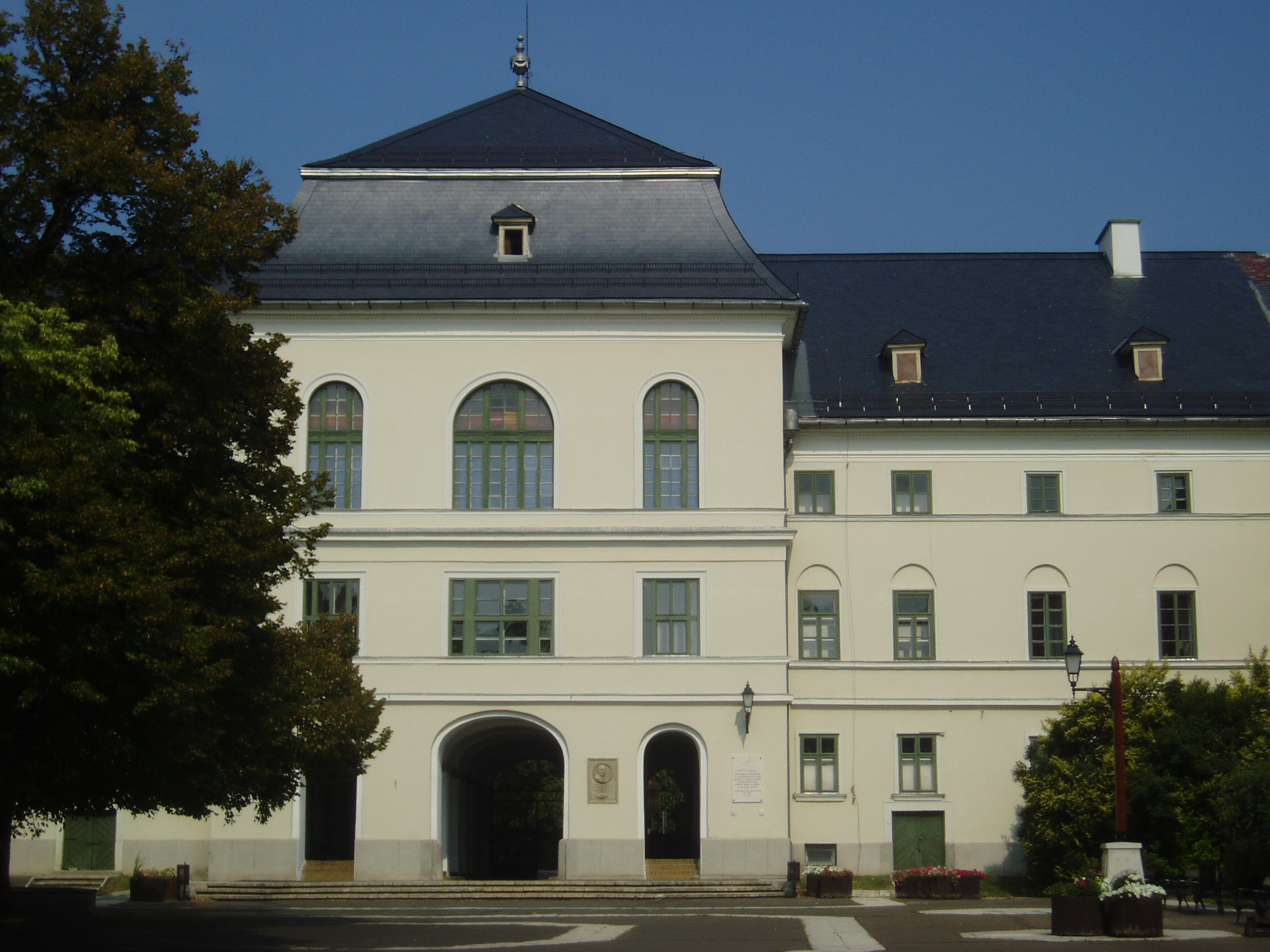 Nyilvános 1061 | 1605 | Sárospatak, Rákóczi utca 1. Református Kollégium | A Református Kollégium Sárospatakot évszázadokon át fontos kulturális központtá tette. Csokonai a „Múzsák székhelyé”-nek mondta, nevezték „Bodrog–parti Athén”-nek, s később, angol nyelven megszerezhető és érvényesíthető diplomájának köszönhetően érdemelte ki a „Magyar Cambridge” elnevezést. Ködöböcz József Sárospatak a magyar művelődés történetében című könyvében így írja le a kollégium épületegyüttesét: A kollégium főépülete, a Nagy Kollégium a Rákóczi út északi végén (Rákóczi út 1. sz.) található, mely 1804–1814 között korai klasszicista stílusban épült. Szép ráccsal ellátott, háromíves nyílású kapuzat vezet be az un. „nagyportá”-ba, amelyet két sor vaskos pillér három hajóra oszt. Kétoldalt a falakon az iskolatörténet néhány fontosabb eseményének, a kollégium nagy alakjainak bronz domborművű ábrázolása látható. Az épület manzárdtetős középső részének második emeletén van a díszterem, az egykori „nagy auditórium”, az iskolai ünnepélyek, istentiszteletek, előadások, egyéb rendezvények helyszíne. A nagyportáról balra a középiskolai leánykollégiumnak (régen: Teológiai Internátus), jobbra pedig a Tiszáninneni Református Egyházkerület Tudományos gyűjteményeinek (Nagykönyvtár, Adattár, Levéltár) a bejárata nyílik. A könyvtár első emeleti nagy termének belső kiképzését a magyar klasszicizmus nagy mestere, Pollack Mihály tervezte. Az iskola udvarán balra, a leánykollégium folytatásaként, egészen a Kossuth utcáig a gimnázium kétemeletes épülete áll. Jobbra az udvar déli oldalán található a legrégibb, ma még meglévő, kollégiumi épület, amely az 1770-es évek „provinciális építkezésének” szép emléke s amelynek földszinti termei a Tudományos Gyűjtemények gazdag múzeumi anyagának raktározására, az emeleti helyiségek pedig állandó kiállítás céljaira szolgálnak. A képen a Kollégium főépületének udvari homlokzata látható. A fénykép 2007 augusztusában készült. Felh. irod.: Ködöböcz József: Sárospatak a magyar művelődés történetében. Sárospatak, 1991 Détsy Mihály: Sárospatak. Bp. Corvina, 1974 Látnivalók Borsod-Abaúj-Zemplén megyében. Miskolc, Well-PRess, 1995 www.sarospatak.hu/nevezetessegek |