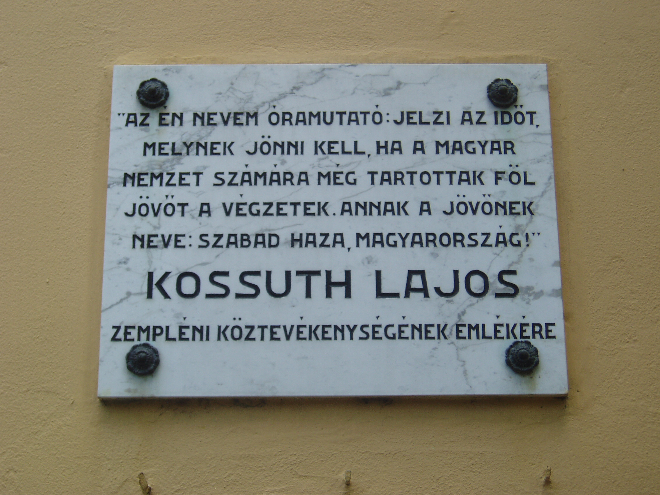Nyilvános 1101 | 1934 | Sátoraljaújhely, Kossuth tér 5. | A városháza (volt megyeháza) a fő tér hangulatát meghatározó barokk stílusban épült 1754-1768 között. Az olasz építészek által tervezett épület impozáns méreteivel az állandóság és a méltóság érzetét kelti. A főbejárat fölötti erkély mögötti díszteremben mondta a fiatal Kossuth első szónoklatát 1831-ben, a koleralázadás idején (az útikönyvekben a beszéd helyeként következetesen az erkélyt említik). Kossuth Lajos szülei 1808. február végén Olaszliszkáról költöztek Újhelybe. 1810 és 1816 között a város piarista gimnáziumának növendéke volt. 1824-ben Pestet otthagyva visszatért Újhelyre, ahol magánügyvédként dolgozott. 1827-ben Zemplén megye táblabírája, 1830-ban Sátoraljaújhely, 1832-ben a vármegye ügyésze lett. Közéleti szereplése 1831-ben a vármegyei közgyűlésen a kolerajárvány kapcsán a jobbágyság társadalmi helyzetéről elmondott beszédével kezdődött. Kossuth többször is felszólalt az épületben, az akkori megyeházán, mint a formálódó ellenzék egyik vezérszónoka. Szokatlan és merész szónoklatait szemtanúként az idős Kazinczy Ferenc is felemlegette levelezésében. Egyik protestáló felszólalását így örökítette meg: "Erre felkele Kossuth Lajos, s oly tűzzel, mintha kezében volna a zendítés szövétneke, két kezét csípejére rakván, képzelhetetlen vakmerőséggel tartá beszédét." Kossuth sátoraljaújhelyi emlékét utca, tér, szobor, több intézmény és emléktábla őrzi. Emléktábla található egykori iskolája falán (lásd: Sátoraljaújhely, Deák F. u. 10-12.), a városháza dísztermében, illetve azon házakon, ahol egykor ő, illetve szülei, testvérei laktak (lásd: Sátoraljaújhely, Móricz Zs. u. 17. és Hősök tere 8.). A fénykép 2007 augusztusában készült. Felh. irod.: Látnivalók Borsod-Abaúj-Zemplén megyében. Miskolc, Well-PRess, 2003 www.satoraljaujhely.hu/nevezetessegek www.vendegvaro.hu Fehér József: Két újhelyi Kossuth-legenda. = Széphalom. A Kazinczy Társaság Évkönyve 12. kötet, 2002 |
