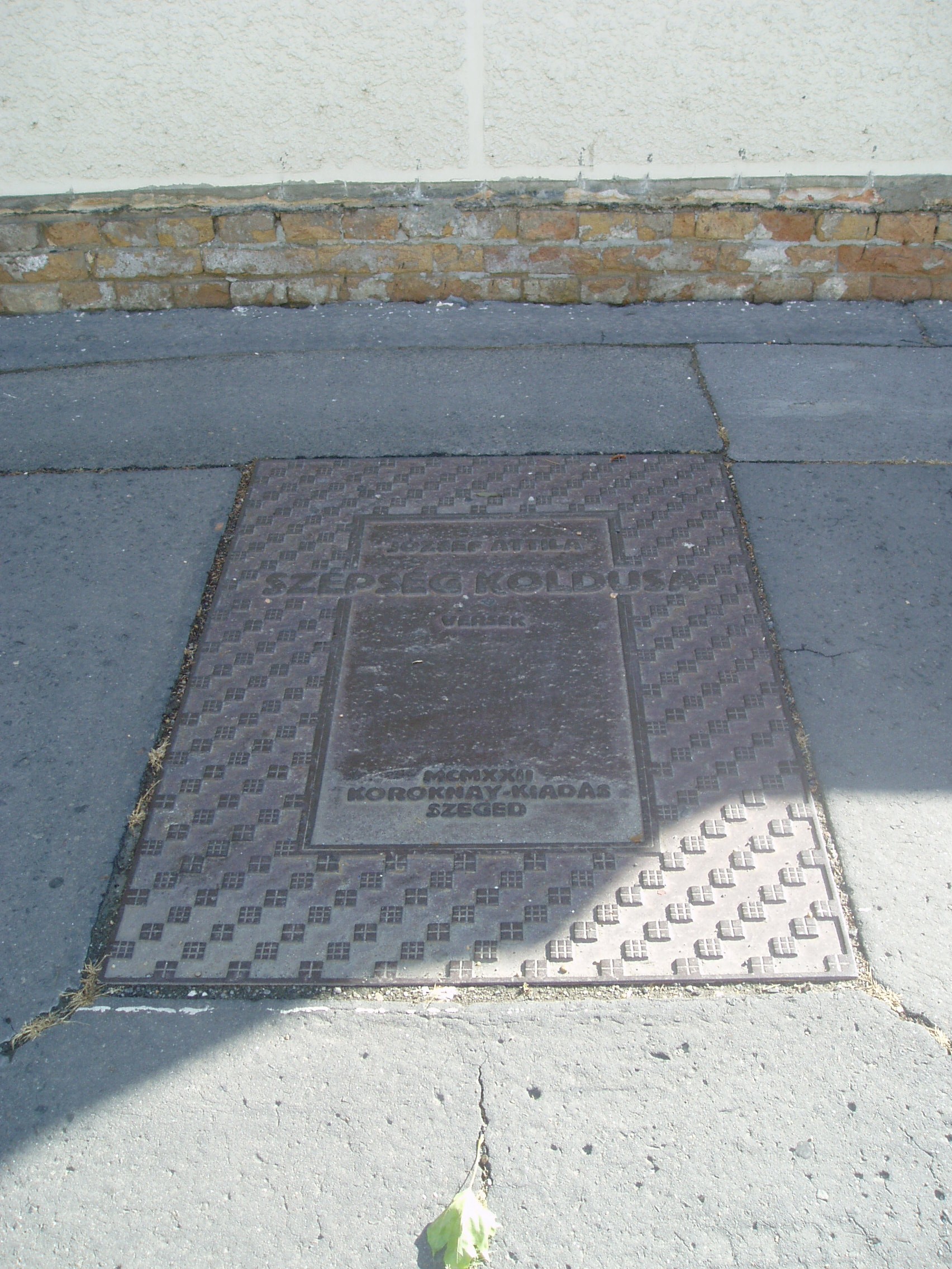 Nyilvános 1145 | 1692 | Makó, Csanád vezér tér 6. József Attila Gimnázium | A város központjából északra nyílik a sugárútszerű Csanád vezér tér. Nyugati oldalán áll a József Attila Gimnázium 1895-ben, eklektikus stílusban, Gerle Lajos tervei alapján emelt épülete. Itt tanított négy évig Juhász Gyula, itt tanult József Attila, majd Erdei Ferenc. A tizenöt és fél éves József Attila 1920 októberében érkezett Makóra. Verseire Juhász Gyula figyelt fel, akinek pártfogása révén a nyugat is közölt néhányat belőlük. Makói diák volt, amikor tizenhét éves korában Szegeden megjelent első verseskötete, a "Szépség koldusa", Juhász Gyula prófétikus előszavával: "A legnagyobb készséggel és örömmel vállalkoztam arra, hogy József Attila első verses könyvéhez előszót írjak. Ez a nagyon fiatal és nagyon tehetséges költő a legteljesebb mértékben megérdemli, hogy a figyelem feléje forduljon, hogy igaz szeretettel és reménységgel fogadja a magyar olvasóközönség és hogy a kritika se menjen el mellette közömbösen vagy ellenségesen és ne elégedjék meg vele szemben a nyomtatásban megjelenőknek rendesen kijáró vállveregetéssel. József Attila Isten kegyelméből való költő." Az épület előtt áll 2005-ben, születése centenáriumán újjáavatott szobra, a járdába ágyazottan pedig első verseskötetének bronzba öntött címlapja idézi emlékét. A fénykép 2007 júliusában készült. Felh. irod.: Barangolások Csongrád megyében. Miskolc, Well-PRess, 1997 |