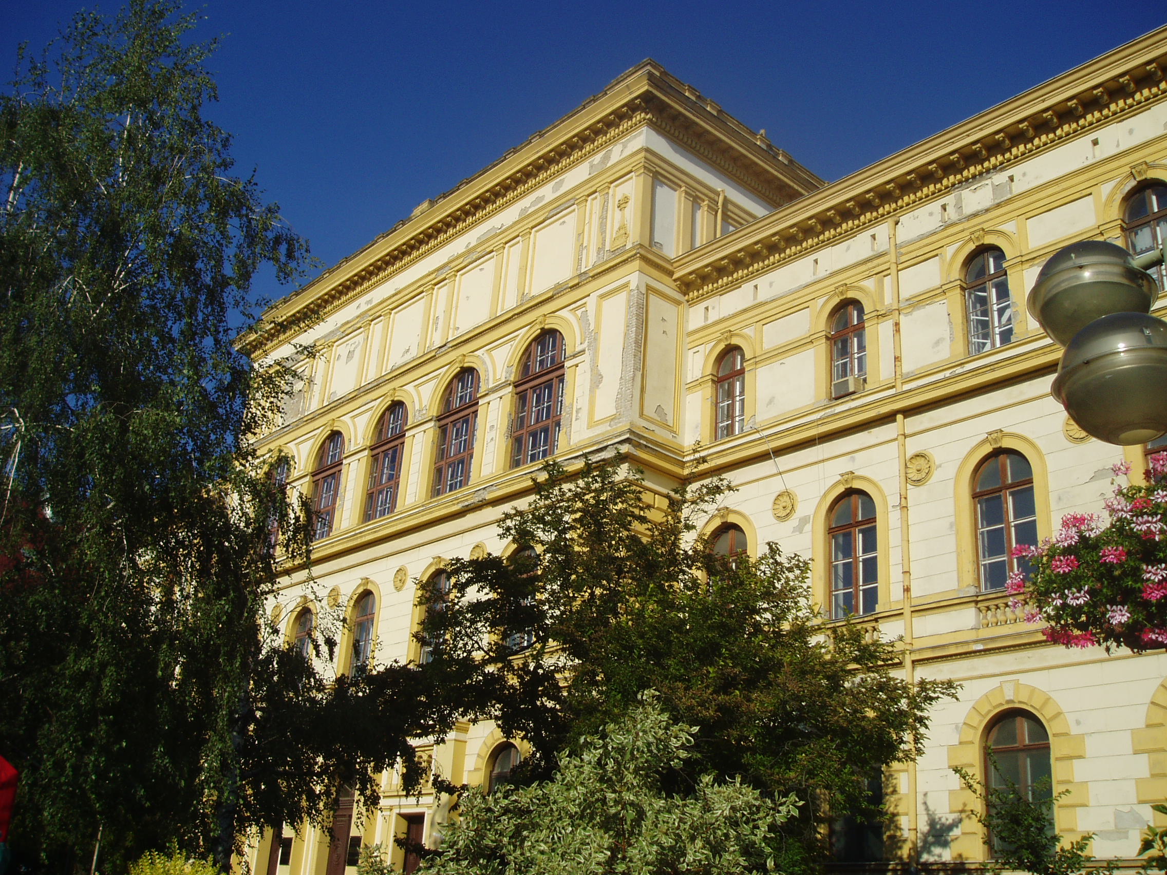 Nyilvános 1123 | 1560 | Szeged, Dugonics tér 13. | A Dugonics tér keleti oldalán áll a központi egyetem klasszicista elemeket tartalmazó, kora eklektikus stílusú, védett épülete. Skalniczky Antal tervei alapján Arleth Ferenc építette 1873-ban. Az épület mind megjelenésében, mind térhatásában Szeged máig egyik legkiemelkedőbb alkotása. Eötvös József kultuszminiszter személyes helyszíni tárgyalásai alapján főreáliskolának épült, s 1880-tól helyet adott a Somogyi-könyvtárnak is. A könyvtárat Ferenc József itt nyitotta meg 1883. október 16-án. 1894-ben az épületet át kellett engedni a Szegeden három évvel korábban fölállított királyi ítélőtáblának, majd 1921-ben a Kolozsvárról áttelepült tudományegyetem költözött falai közé. 1925 őszéig itt működött a bölcsészeti kar, ide járt 1924 őszétől József Attila (részletesebben lásd: Szeged, Dugonics tér 2. és 3. kép). A fénykép 2007 júliusában készült. Felh. irod.: Péter László: Szeged. Bp. Panoráma, 1981 |