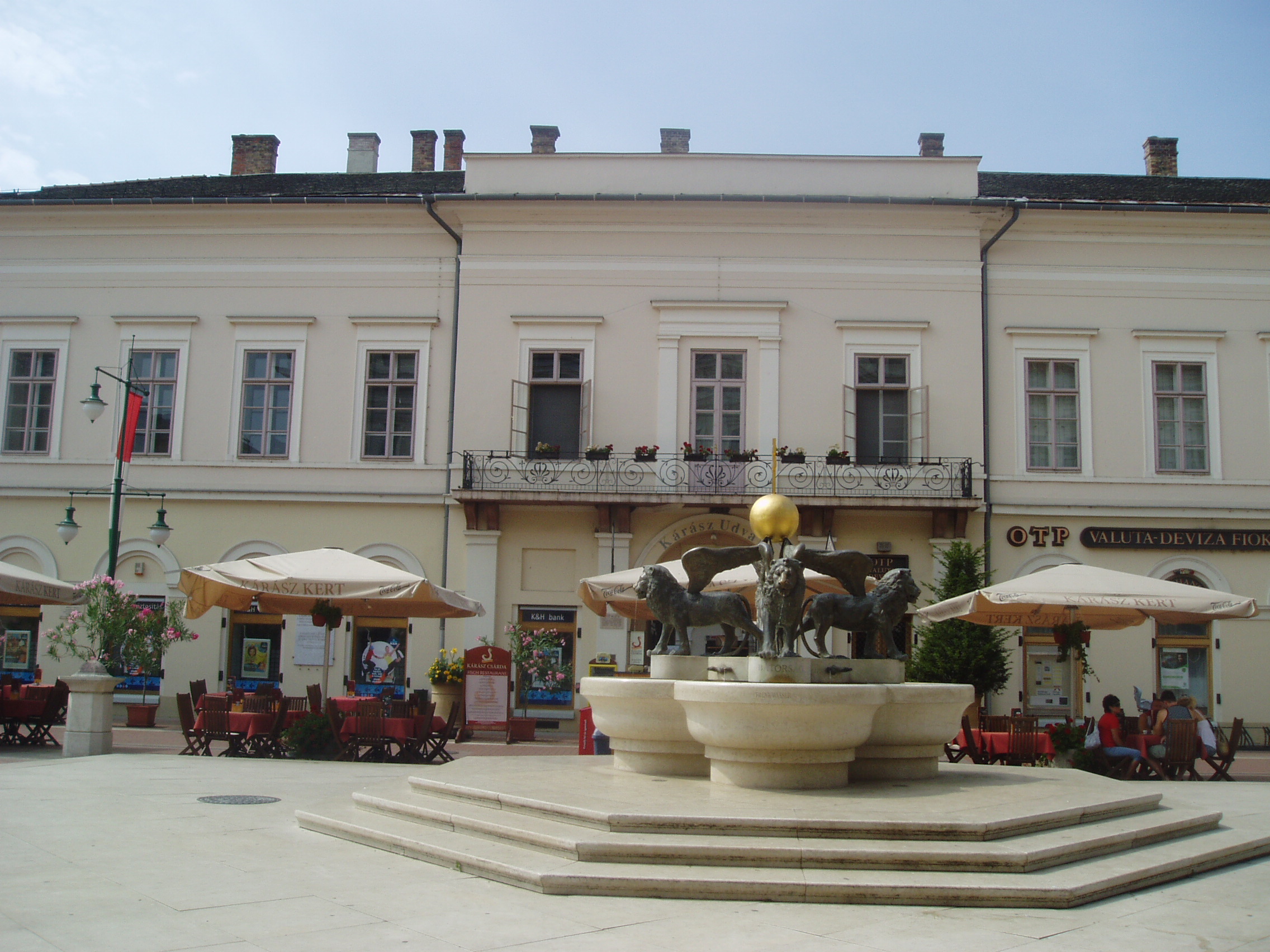 Nyilvános 1095 | 1566 | Szeged, Klauzál tér 5. Kárász-ház | A tér legszebb és legjelentősebb műemlék épülete a Kárász-ház (1845). A szegedi klasszicizmus legérettebb, egyszerű, de monumentális alkotása. Kiemelkedő szerepe van a tér kiegyensúlyozott hatásában. 1849-ben ebben a házban szállt meg Kossuth Lajos és ennek kovácsoltvas erkélyéről mondotta el július 12-én utolsó nyilvános hazai beszédét, majd 14-én itt írta alá a román - magyar megbékélési tervezetet is Nicolae Bălcescuval. A történelmi nevezetességű erkély 1918-ban is szerephez jutott. Innen jelentette be október 31-én a szegedi Nemzeti Tanács a város népének az őszirózsás forradalom győzelmét. Szólt ekkor a szegediekhez Móra Ferenc és Juhász Gyula is. Majd az események fordultával 1919. június 2-án Károlyi Gyula kormánya is itt hirdette ki megalakulását. A Kárász családból többen is beírták nevüket a város történetébe. Az alapító, Kárász Miklós (1715-1797) szegény felvidéki nemes ifjú volt, városi íródeáknak került Szegedre. 1739-ben lett Szeged főjegyzője, s egyúttal - szabályellenesen - tanácsnoka is, majd 11760-ban Csongrád megye alispánja. Vagyonát házasságával alapozta meg. A mostani ház helyén az 1760-as években építette fel kúriáját. Eléje Szentháromság-szobrot emelt, állítólag fogadalomból, mert egy kocája elvesztése miatt ártatlan kondását agyonütötte. Móricz Pál "A Kárász uraság kocája" című elbeszélésében dolgozta fel a helyi szájhagyományt. Fia, Kárász István (1745-1815) Csongrád megye alispánja, az 1790-91. évi országgyűlésen a nemesi ellenzék egyik elszánt vezére volt. Az ő fia, szintén Kárász István 1840-ben mint Csongrád megye követe az országgyűlésben Deák Ferenccel emelte fel szavát az ősiség ellen. Kárász Miklós egy másik unokája, Kárász Benő (1792-1874) építette a most itt álló Kárász-házat. Ő a megyének a reformkorban alispánja, 1848-ban főispánja, tagja a szegedi hadi választmánynak, amiért Világos után a pesti Újépület foglya volt. Kegyelem révén szabadult ugyan, de az önkényuralom alatt állandó rendőri felügyelet alatt állott. Az alkotmány visszaállításáért folytatott küzdelemben, Szeged gazdasági fejlődésében jelentős szerepet játszott, majd 1861-től 1868-ig ismét főispán lett. Lánya, Anna fiatalon meghalt, egyetlen fia, Kárász Géza (1837-1905) kezén pedig a vagyon elúszott. Amikor 1857-es szegedi látogatásakor ebben a házban szállt meg Ferenc József, az anekdota szerint a húszéves, tüzes kuruc Kárász Géza éppen akkor érkezett haza külföldről, s a kapu alatt a császári őrséget meglátva iszonyú lármát csapott, mire apja a hajdúkkal bezáratta a kocsiszínbe... A fénykép 2007 júliusában készült. Felh. irod.: Péter László: Szeged. Bp. Panoráma, 1981 |