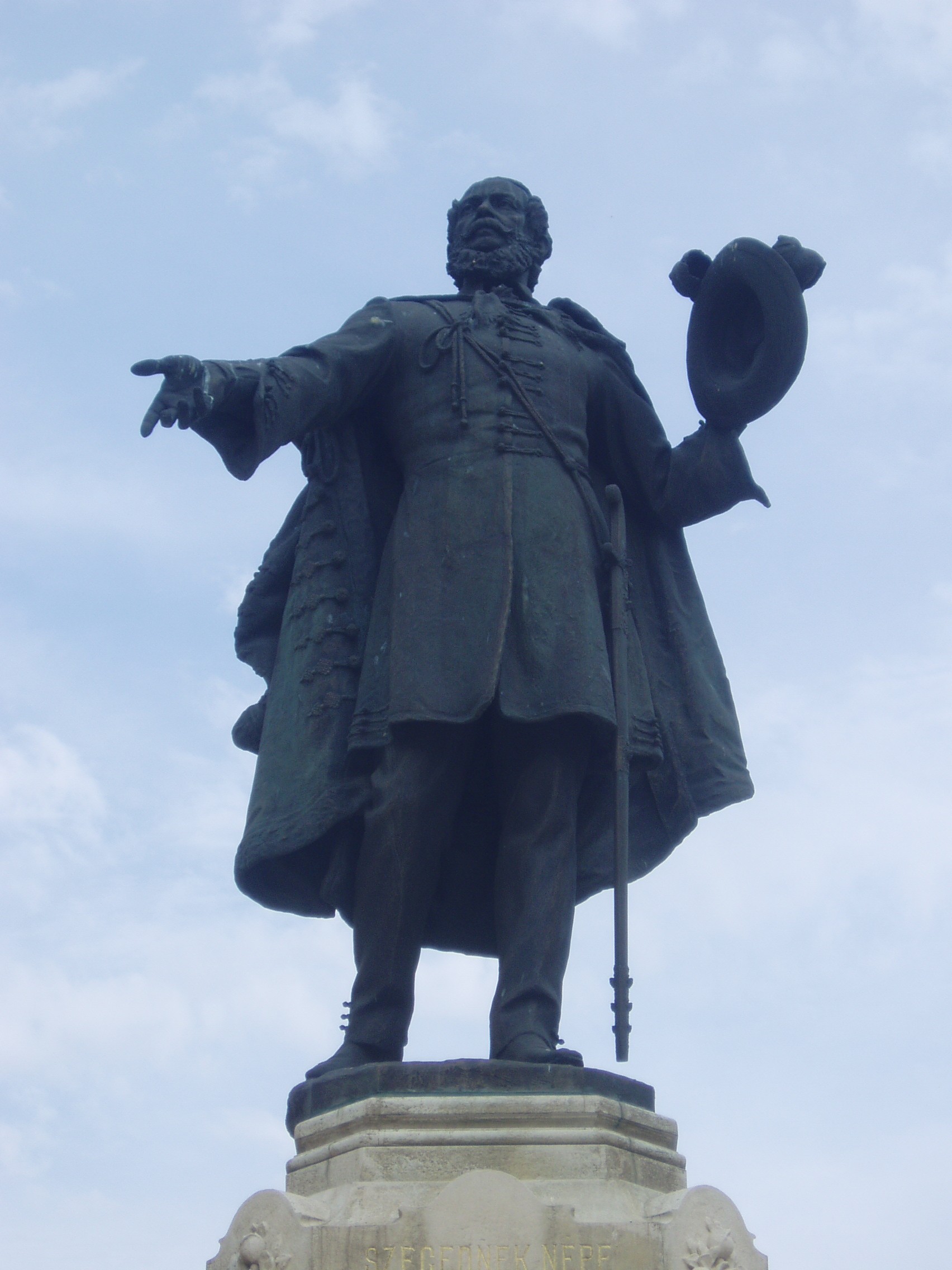 Nyilvános 1118 | 1618 | Szeged, Klauzál tér: Kossuth Lajos szobra | A Klauzál tér közepén áll az ország első nagy Kossuth-szobra, Róna József 1902-ben, Kossuth Lajos születésének 100. évfordulóján felavatott alkotása. Talapzatára szegedi toborzóbeszédének kezdő sorait vésték: "Szegednek népe, nemzetem büszkesége". Kossuth a Klauzál tér egyik palotájában szállt meg alföldi toborzókörútja alkalmából és itt mondta el utolsó magyarországi beszédét (lásd: Szeged, Klauzál tér 5.) 1903. október 6-án éjszaka katonák megkoszorúzták a szobrot, de másnap a koszorúkat a császári és királyi 46. gyalogezred parancsnoksága levétette. A fölháborodott közvélemény országos tüntetésekben tört ki és mindenhonnan áradtak a koszorúk Szegedre. A fénykép 2007 júliusában készült. Felh. irod.: Péter László: Szeged. Bp. Panoráma, 1981 |