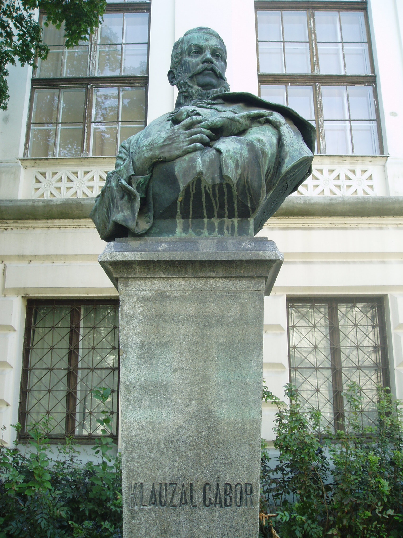 Nyilvános 1139 | 2429 | Szeged, Roosevelt tér: Klauzál Gábor mellszobra | A Közművelődési palota előtt 1906-ban helyezték el Klauzál Gábor mellszobrát, ifj. Vastagh György alkotását. Klauzál Gábor Pesten végzett jogot, s a hagyomány szerint amikor Imre bátyja hívására állást keresni jött Szegedre, kendőbe kötve, botja végén hozta minden vagyonát. Egy bálon hódította meg a szép Prezetska Máriát, egy jómódú gyógyszerész lányát. Bátyja és apósa vitte keresztül, hogy a jó képességű fiatal ügyvédet Csongrád megye 1828-ban első aljegyzőnek és fizetéses táblabírónak nevezte ki. Szeged 1832-ben követévé választotta. 1847-ben meghalt a felesége, így apósa házát ő örökölte. A szabadságharc bukása után kistétényi birtokán gazdálkodott. Az 1861. és 1865. évi országgyűlésen Szeged képviselője volt a Deák-párt programjával. Szegeden hunyt el, sírja a Belvárosi temetőben van (lásd: Szeged, Fonógyári út). Egykori lakóházának helyét emléktáblával jelölték meg (lásd: Szeged, Klauzál tér 8.). A fénykép 2007 júliusában készült. |