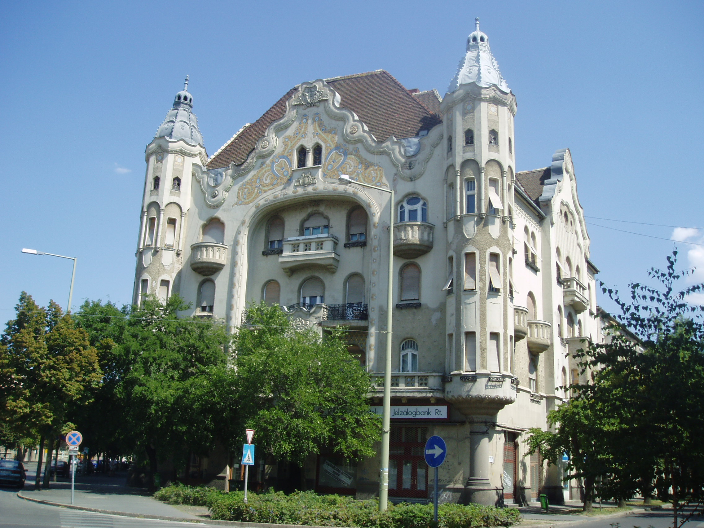 Nyilvános 1125 | 1669 | Szeged, Tisza Lajos körút 20. | A kiskörútnak is nevezett Tisza Lajos körút egyik legszebb és legérdekesebb épülete a monumentális, szecessziós stílusú Gróf-palota. Névadója az építettő dr. Gróf Árpád Márton városi főügyész, kormányfőtanácsos, aki magas lakbéreket is megfizetni tudó, jól szituált családok számára szánta bérházát. Az épületet Raichl J. Ferenc tervezte, s 1912-13 között, mindössze 13 hónap alatt épült fel. A három utca által határolt telken álló háromemeletes városi palota megformálásában az építész jól ötvözte a modern szecessziós törekvéseket a hagyományokban bővelkedő magyaros és keleti ornamentikával. A fénykép 2007 júliusában készült. Felh. irod.: Péter László: Szeged. Bp. Panoráma, 1981 http://magyar.szegedhotels.com/utikonyv_szeged_varosa.php |