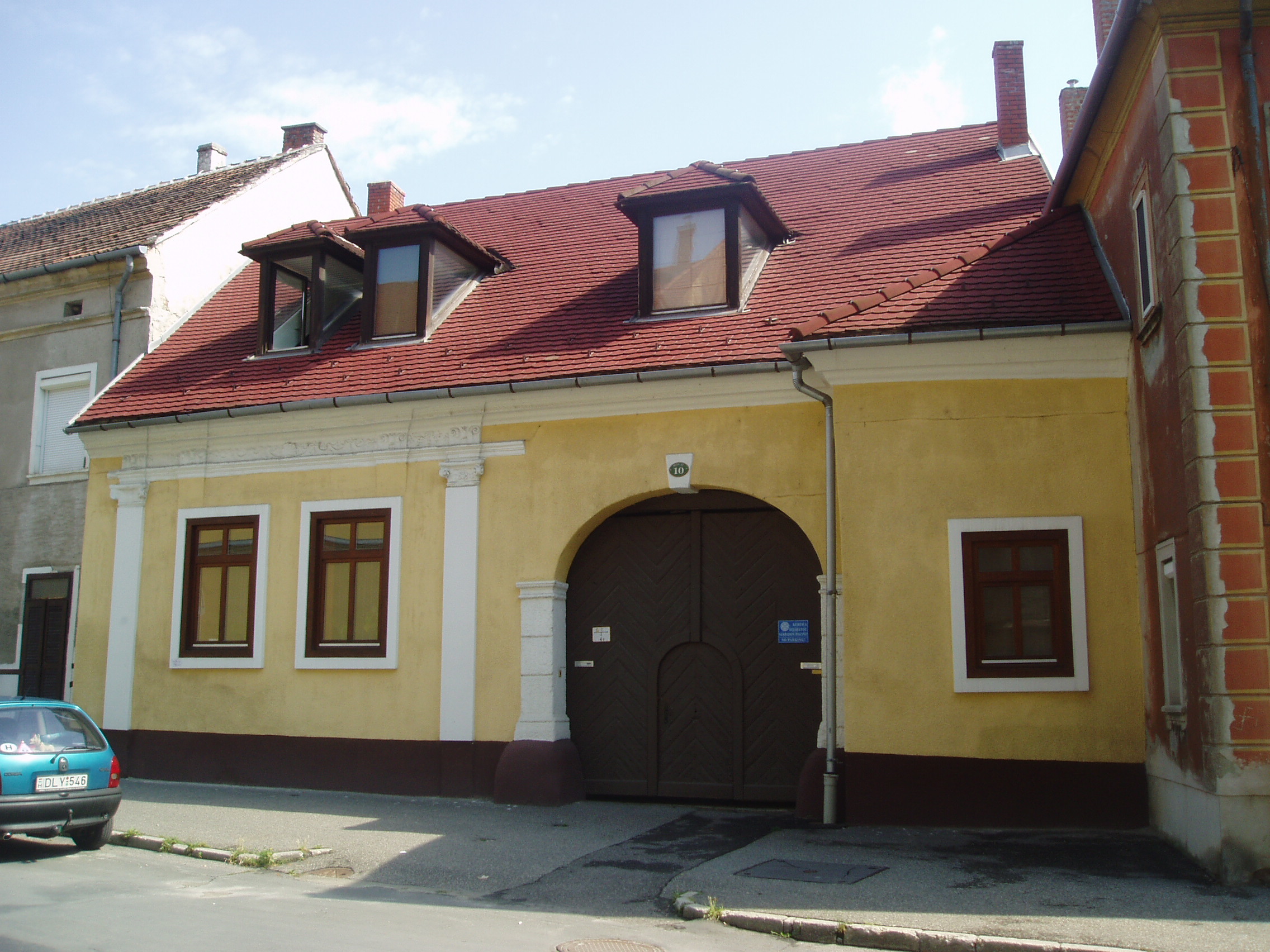 Nyilvános 1153 | 1685 | Sopron, Bécsi út 10. | A földszintes barokk lakóház a XVIII. század közepe táján kapta mai alakját. Előzőleg Esterházy herceg tulajdonában volt, később iparosok birtokolták.Jobboldalt nyíló kapuját toszkán fejezetes pillérek és záróköves kosárív keretezi. A fénykép 2008 júniusában készült. Felh. irod.: Czellár Katalin: Sopron. 3. jav. kiad. Bp. Panoráma, 2000 |