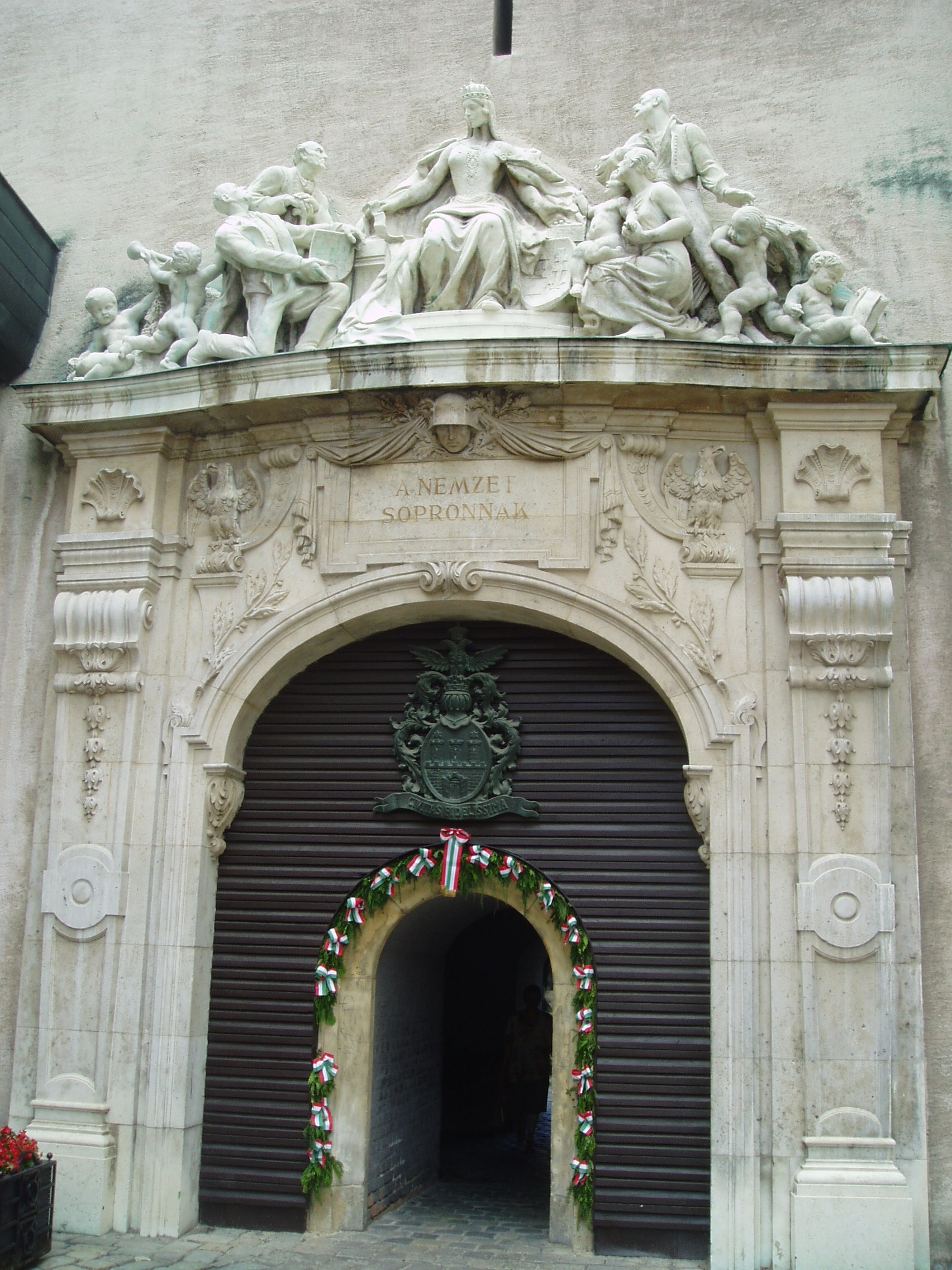 Nyilvános 1139 | 1861 | Sopron, Előkapu: Tűztorony | Sopron jelképe a város messzire ellátszó, legmagasabb építménye. Első írásos említése 1409-ből való. Magassága akkor körülbelül a mai loggiáig terjedt, ahol akkor is erkély volt. 1676-ban leégett, és csak 1681-ben építették újjá. A XIX.század végén az új városháza építésekor csaknem lebontották. 1928-ban átjárója köré és fölé a nemzet ajándékaként Kisfaludi Strobl Zsigmond és Hikisch Rezső népszavazási emlékműve került. Évszázadokon át a szabad királyi városokra jellemző toronyzene helyszíne volt. A kép 2008 júniusában készült. Felh. irod.: Czellár Katalin: Sopron. 3. jav. kiad. Bp. Panoráma, 2000 |