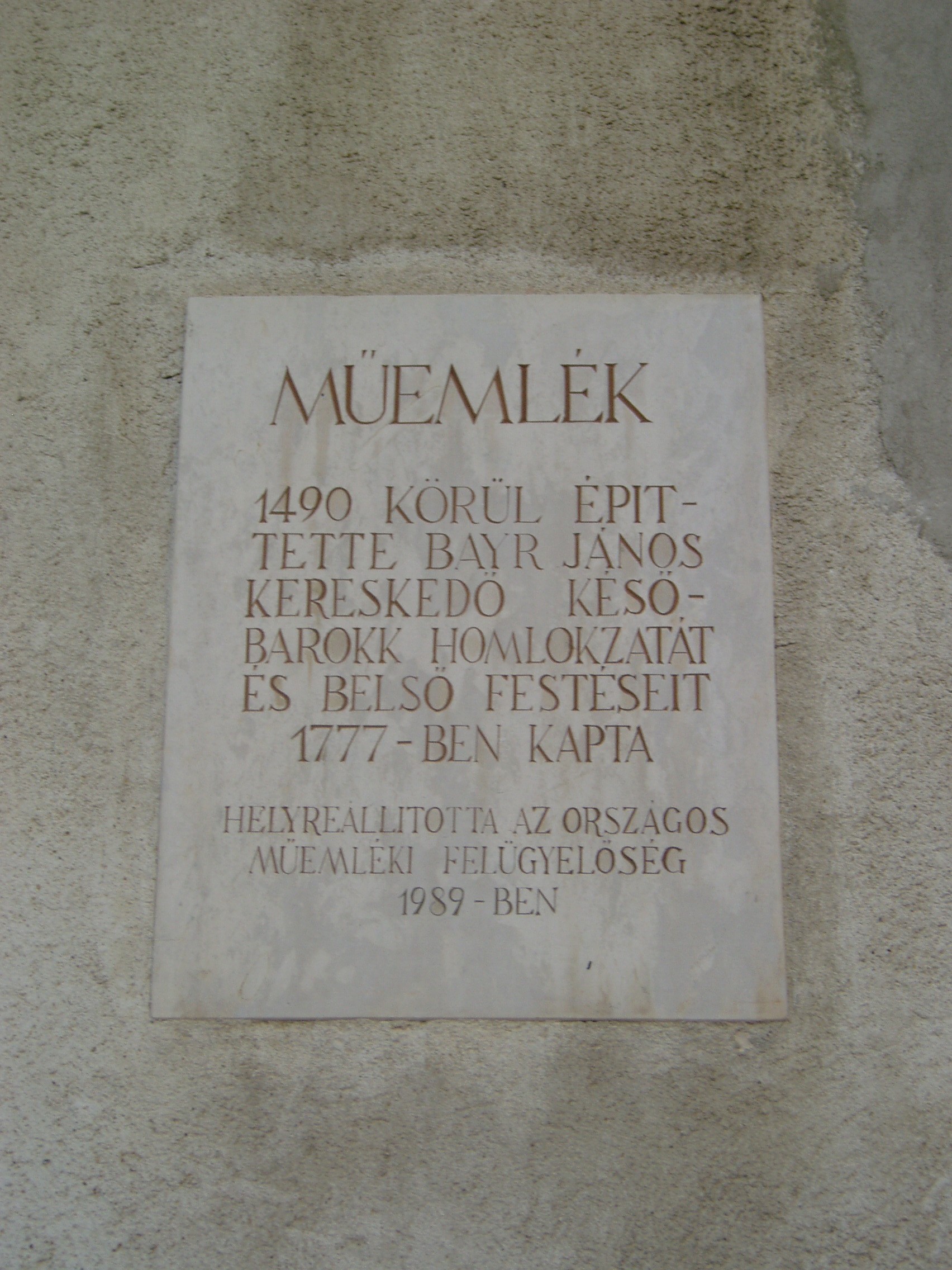 Nyilvános 1125 | 1454 | Fő tér 3. Gambrinus-ház | A XV. század elején épült házat 1422-ben Zsigmond király adományozta Sopronnak városháza céljára, ez is maradt egészen 1496-ig. A XVII. század elején átalakították. Az évszázadok során sok család váltotta egymást a ház birtoklásában. 1827-ben Reichenhaller Gottlieb örökölte; ő az épületet a Patika-háztól (lásd: Fő tér 2.) elválasztó kis közt megvette és részben beépítette. 1914-ben ívbe foglalt hármasablakot alakítottak ki a földszinten. Az épület történetéhez tartozik, hogy itt írta le Guggelweit János városi jegyző a XV. században az ún. Soproni virágéneket, amelynek kéziratát ma a városi levéltár őrzi. Az épület kapujának keretezése 1620-ból származik. Az erkély nyílásai mögött a legutóbbi restauráláskor előkerült gótikus ablaksor maradványai láthatóak. Az ettől balra látható az 1827-ben hozzáépített kiegészítés. A ház keresztboltozattal lefedett kapualjában csúcsíves kettős ülőfülke van, udvarában pedig középkori konzolsor maradványai láthatók. Az épületben ma a Gambrinus étterem működik. A kép 2008 júniusában készült. Felh.irod.: Czellár Katalin: Sopron. 3. jav. kiad. Bp. Panoráma, 2000 |