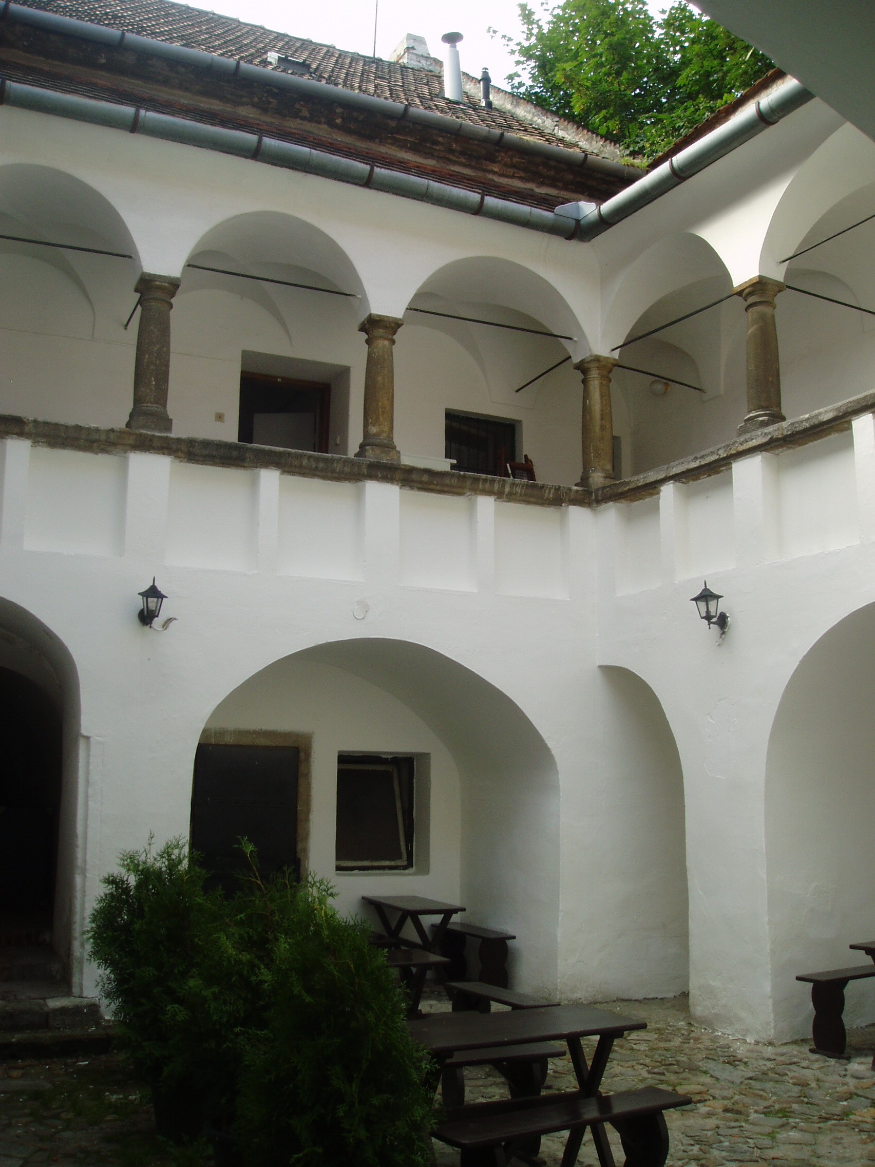 Nyilvános 1049 | 1365 | Sopron, Hátsókapu 2. | Az ún. Caesar–ház hatalmas reneszánsz sarokerkélyével a városkép jellegzetes eleme. Helyén valamikor több kisebb, valószínűleg a XV. században épült lakóház állt. Az 1676-ban Sopron belvárosát sújtó nagy tűzvész után ezek megmaradt részei, valamint a belső városfal maradványainak felhasználásával épült fel e pompás kis városi palota. Dongaboltozatos kapualjában megmaradtak a középkori ülőfülkék. Udvari szárnyának emeletén toszkán oszlopos, köríves árkádsor van. Az udvarból a falszorosban kialakított kertbe juthatunk, ahol látható a római és a ráépült középkori városfal, amelyet ablakokkal áttörve az épület hátsó homlokzataként használtak fel. Két emeleti termében megmaradt az 1700 körül készült, kora barokk ornamentális stukkómennyezet. Az 1681-es országgyűlés idején ebben az épületben ülésezett a főrendiház, ekkor választották Magyarország nádorává Esterházy Pál herceget, aki Harmonia caelestis című kantátasorozatával beírta nevét a magyar zenetörténetbe is. Az eseményt a Soproni Városszépítő Egyesület körpecsétjével ellátott emléktábla örökíti meg az épület homlokzatán. A fénykép 2008 júniusában készült. Felh. irod.: Czellár Katalin: Sopron. 3. jav. kiad. Bp. Panoráma, 2000 |
