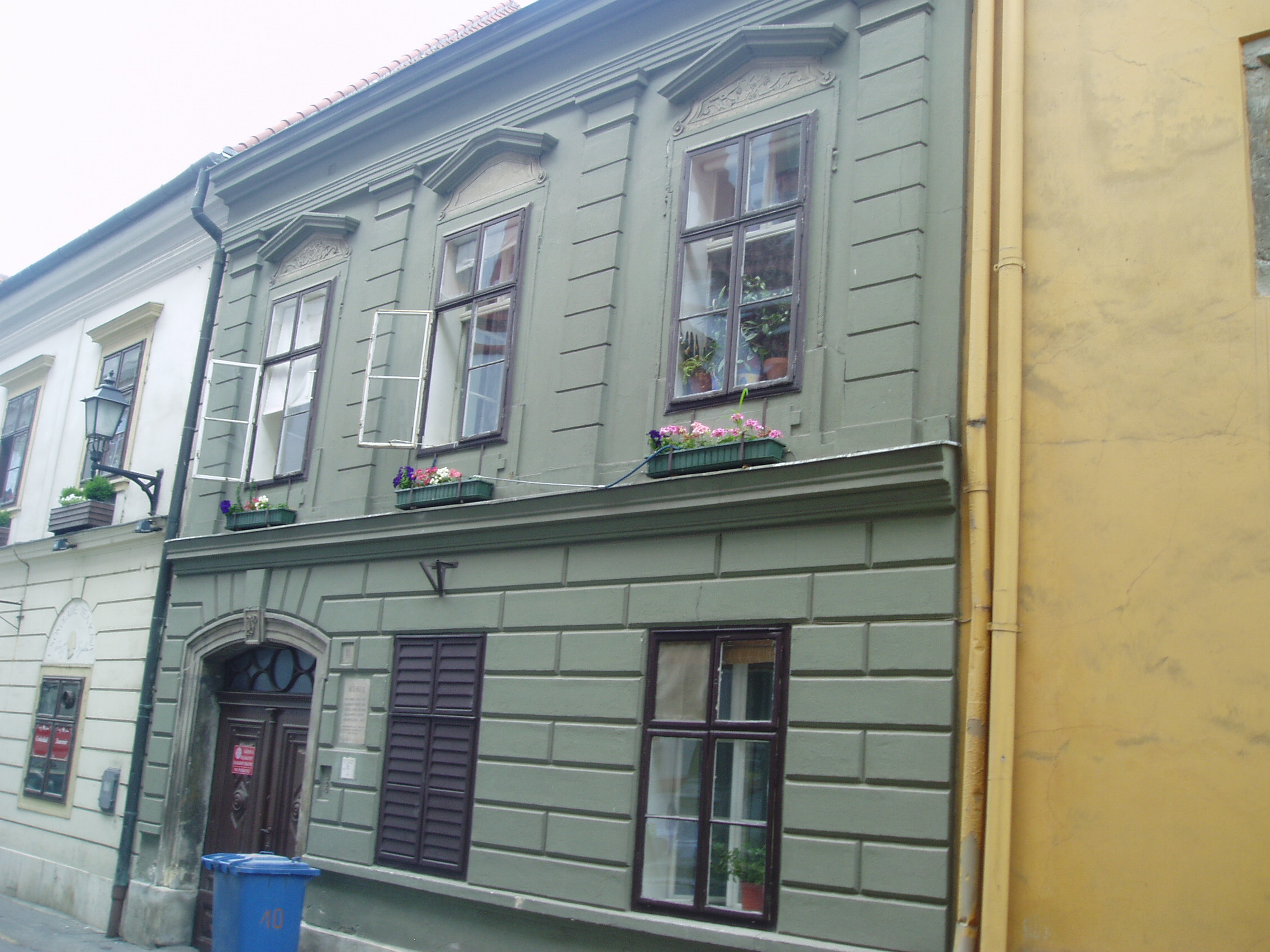 Nyilvános 1045 | 1427 | Sopron, Szent György utca 10. | Az egyemeletes barokk lakóház a XVI. században épült. A XIX. század második felében erősen átalakított homlokzata a XVIII. századból származik. Az épület belseje csaknem hiánytalanul őrzi XVIII. századi állapotát. Emeleti, boltozott utcai szobáiban virágdíszes festés látható. A kép 2008 júniusában készült. Felh. irod.: Czellár Katalin: Sopron. 3. jav. kiad. Bp. Panoráma, 2000 |