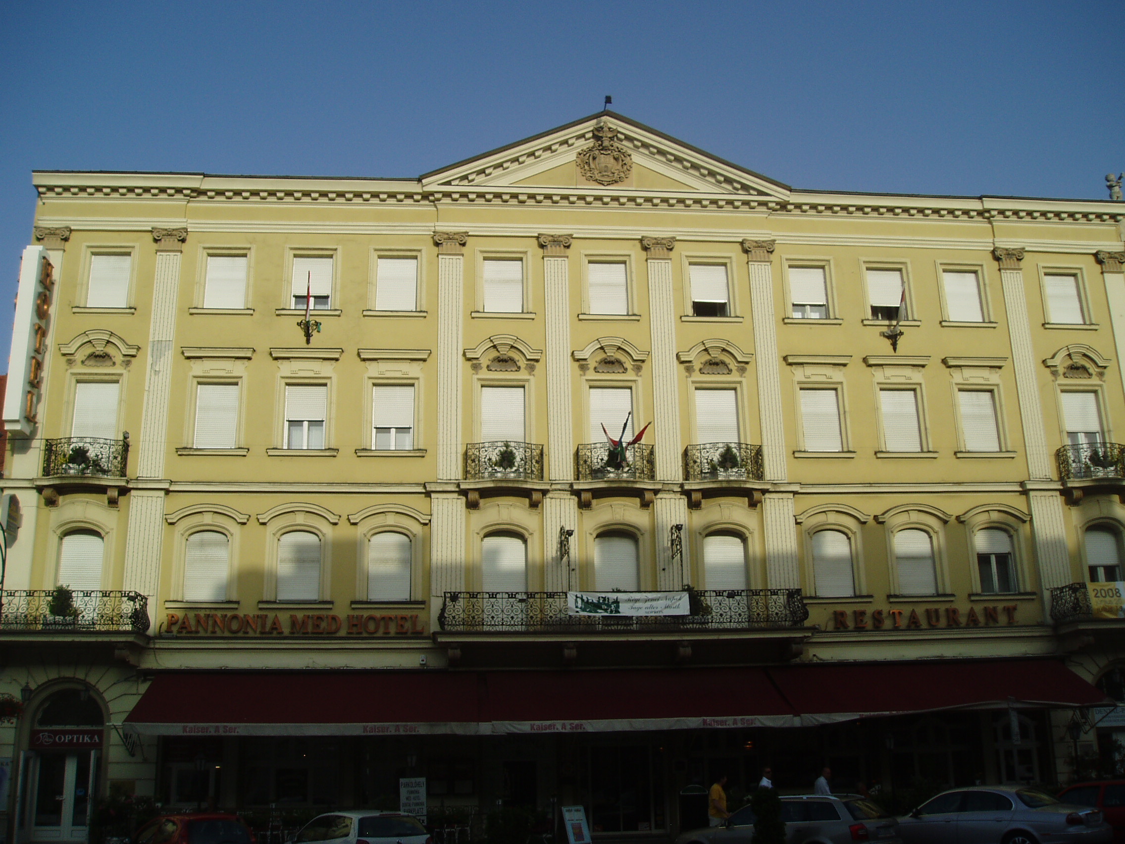 Nyilvános 1054 | 1605 | Sopron, Várkerület 75. | A mai Pannónia Szálloda helyén egykor az Arany Szarvas fogadó állott, amely évszázadokon keresztül szolgált szállásul a Sopronba látogatóknak. Többször leégett, de mindannyiszor helyreállították. Csatkai Endre soproni helytörténész szerint ide tért be 1882-ben a keringőkirály, ifj. Johann Strauss is, amikor fiatal feleségével együtt — inkognitóban — a városban tartózkodott. A vendéglőben muzsikáló neves cigányprímás, Munczy Lajos tüstént felismerte, s a fogadó vendégei lelkesen köszöntötték a zeneszerzőt, aki azonban rövidesen "elmenekült" a szüntelen ünneplés elől. A patinás szállodát 1892-ben lebontották, s a következő évben Hinträger Móric tervei szerint felépült a ma is működő Pannónia. Itt szállt meg 1928. december 2-i koncertje alkalmából Bartók Béla. A kép 2008 júniusában készült. Felh. irod.: Czellár Katalin: Sopron. 3. jav. kiad. Bp. Panoráma, 2000 Csatkai Endre: A soproni muzsika története. Sopron, 1925 Nagy Alpár: Bartók Béla soproni kapcsolatai. = Életünk 1975. 5. |