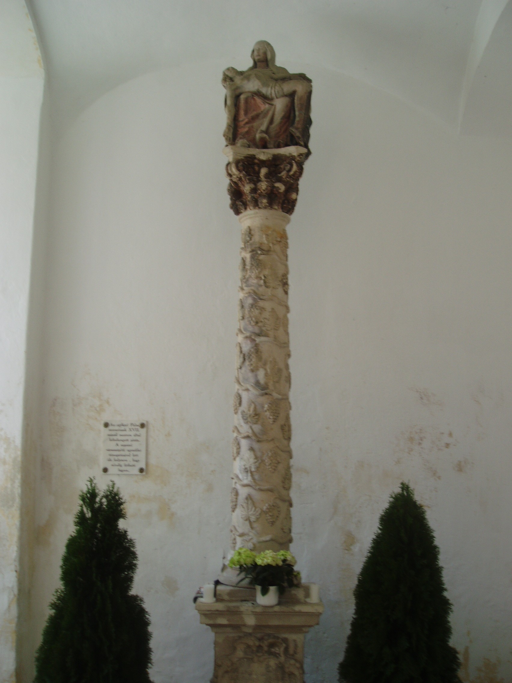 Nyilvános 1099 | 1656 | Sopronbánfalva: Kolostorhegy út: Karmelita templom és kolostor | Sopronbánfalva fölött a Sopronból Brennbergbányára vezető út déli oldán magas domb emelkedik. A dombot uraló gótikus eredetű, első formájában a XV. század végén épült templom és a hozzá csatlakozó barokk kolostorszárnyak eredetileg pálos szerzetesek, majd karmelita apácák otthona volt. Az épületegyüttest a település központjával a meredek domboldalban egyenesen húzódó díszes lépcső köti össze, amelyet karmelita-, vagy pálos lépcsőként ismer a köztudat. A lépcső hét lépcsőkarból és hét pihenőből áll. A pihenőkön, a baluszteres mellvéden jobbról-balról egy-egy szent kőszobra áll. A kép 2008 júniusában készült. Felh. irod.: Czellár Katalin: Sopron. 3. jav. kiad. Bp. Panoráma, 2000 |