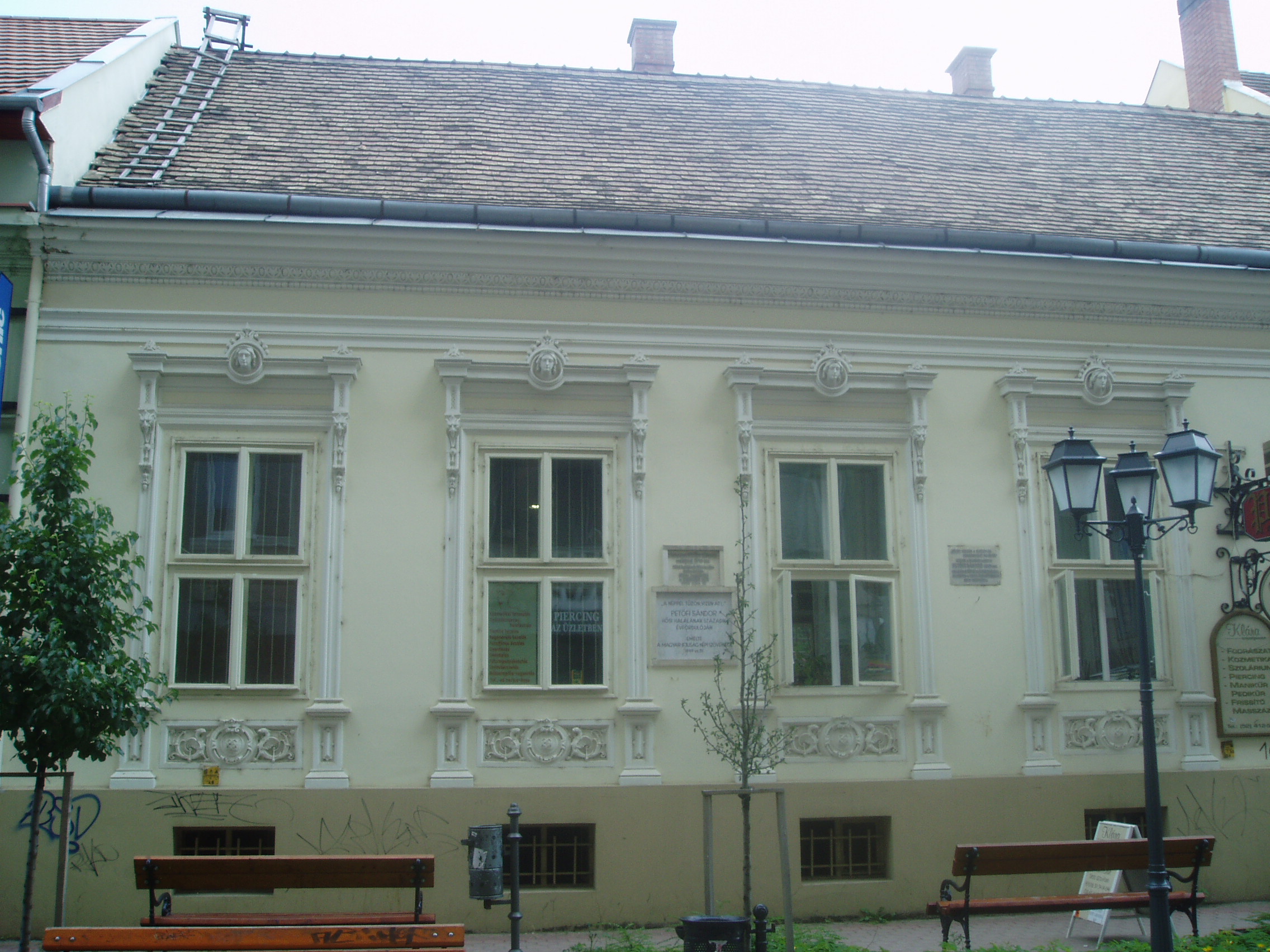 Nyilvános 1581 | 3661 | Debrecen, Batthyány utca 16. | Ebben a házban lakott Petőfi Sándor gyermeküket váró fiatal feleségével 1848/49 telén, Ormós Gábor szabómesteréknél. Itt született meg 1848. december 15-én fia, Zoltán. A nagy eseményről a költő így számolt be: "Született Zoltán fiam december 15-én 1848. déli tizenkét órakor, Debrecenben, a Harmincad utcában, az utcára nyíló kapu melletti szobában... Azaz jobban mondva: pénteki napon és ami több, Debrecenben!" Visszagondolva 1843/44 telére, amit rendkívül nyomorúságos körülmények között töltött Debrecenben, nem csoda, hogy a város nem a legjobb emlékeket hagyta a költőben. A szobában, amely az utcára nyíló kapu mellett található, ma utazási iroda van... Petőfi harcra buzdító, nagyhatású költemények egész sorát írta ebben a házban: Akasszátok fel a királyokat, Itt a nyilam, mibe lőjem, Az egész világ a harcmezőn, Európa csendes, újra csendes... és más költeményeit. Innen indult a harctérre, Bem tábornokhoz, hogy aztán már csak egy-egy napra, futó látogatásra térjen vissza családja körébe A ház homlokzatán több emléktábla is idézi az történteket. A fénykép 2006 júniusában készült. Felh. irod.: Kovács Gergelyné: Debrecen. Bp. Panoráma, 1981 Papp Antal: Debrecen. Bp. Panoráma, 1976 Petőfi emlékhelyek a Kárpát-medencében. Kiskőrös, 1996 |
