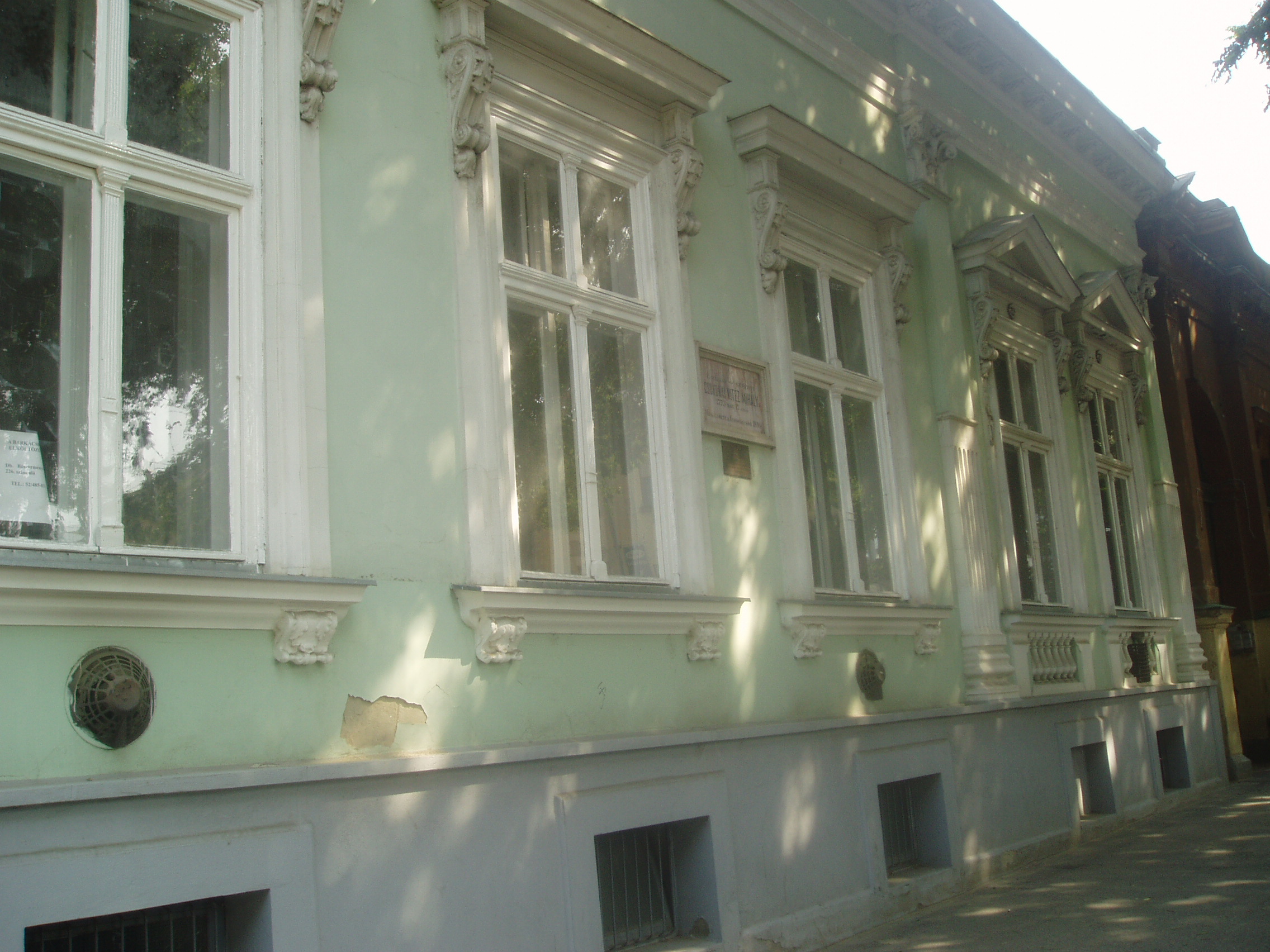 Nyilvános 1150 | 1762 | Debrecen, Hatvan utca 23. | Az ezen a helyen korábban állott épületben született 1773. november 17-én Csokonai Vitéz Mihály. A jelenlegi eklektikus épületet 1890 körül emelték. Ebben működött a város első múzeuma 1905-1928 között. A Csokonai eredeti szülőházát jelölő emléktábla ma az utódépületen látható. A fénykép 2006 júniusában készült. Felh. irod.: Papp Antal: Debrecen. Bp. Panoráma, 1976 Kovács Gergelyné: Debrecen. Bp. Panoráma, 1981 |