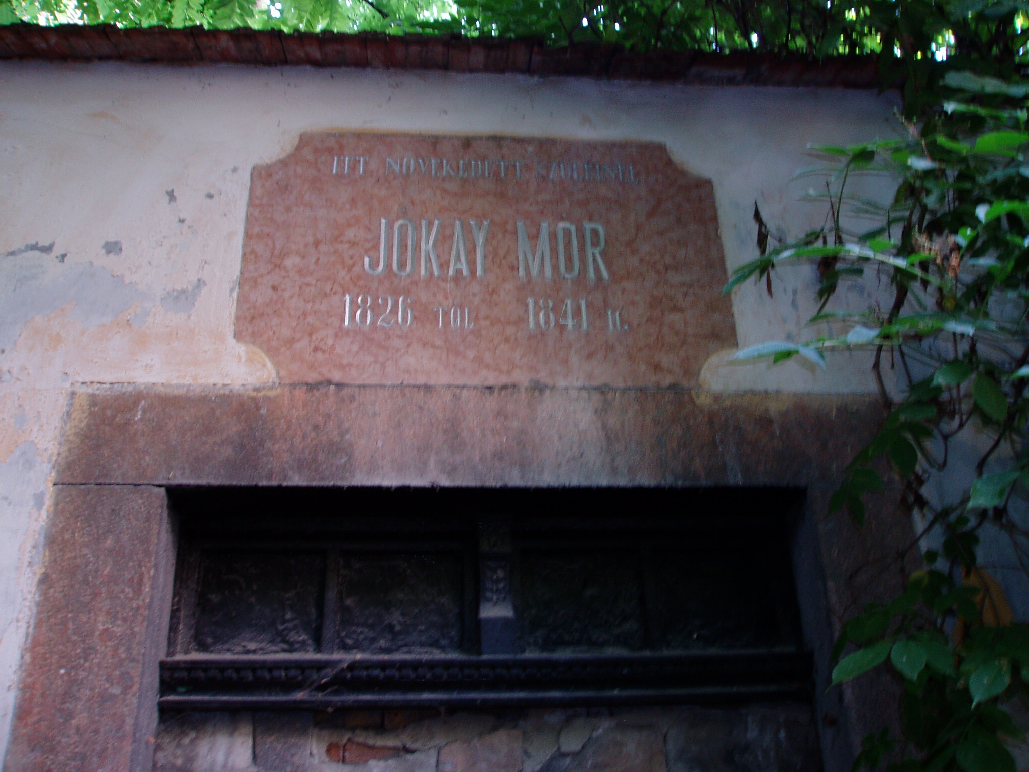 Nyilvános 1578 | 3586 | Komárom (Komárno), Határőr utca 1. | A mostani lakóház helyén állt egykor az a földszintes épület, amelyben 1826-tól 1841-ig Jókai Mór nevelkedett. Pápai és kecskeméti diákévei után ismét ide tért vissza 1844 nyarán, amikor joggyakornok lett Komárom népszerű ügyvédjénél, Asztalos Istvánnál. A családi otthonban fejezte be 1844 karácsonya körül a még Kecskeméten elkezdett első, - s egyetlen Komáromban írt regényének, a "Hétköznapok"-nak a kéziratát. Ebben az időben, a téli esték vidám társas összejövetelein szövődött első szerelmi regénye is Asztalos Etelkával, principálisa lányával. Jókai 1845 tavaszán Pestre költözött, hogy ott készüljön fel az ügyvédi vizsgára, s ettől kezdve csak látogatóban fordult meg a családi házban. Egy alkalommal magával hozta ide barátját, Petőfi Sándort is. A családi házat az író bátyja, Károly örökölte, aki falára emléktáblát készíttetett a következő szöveggel: "Itt növekedett szüleinél Jókay Mór 1826-tól 1841-ig" (az író vezetéknevét eredeti formában tüntette fel). A házat Jókay Károlytól leánya, Etelka, Ihász Lajosné örökölte. Ihászék építették 1897-ben a család eredeti háza helyén a ma is látható bérházat. Ha az utazónak szerencséje van, s nyitva van a bérház kapuja, feltétlenül menjen be az udvarba, ahol egy falba beépítették az eredeti ajtókeretet s fölötte a Jókay Károly által állított emléktáblát. Sőt, megmaradt és az udvarban látható az eredeti Jókay-ház két oszlopa is, amelyek arról nevezetesek, hogy Jókay Eszter (az író nővére) visszaemlékezése szerint a kisiskolás Móric, ha valamit szó szerint kellett bemagolni, akkor azt úgy ismételgette, hogy közben valamelyik oszlop körül keringett... A fénykép 2005. júliusában készült. Felh. irod.: Mácza Mihály: Komárom nevezetességei. Pozsony, Madách-Posonium, 2002 |