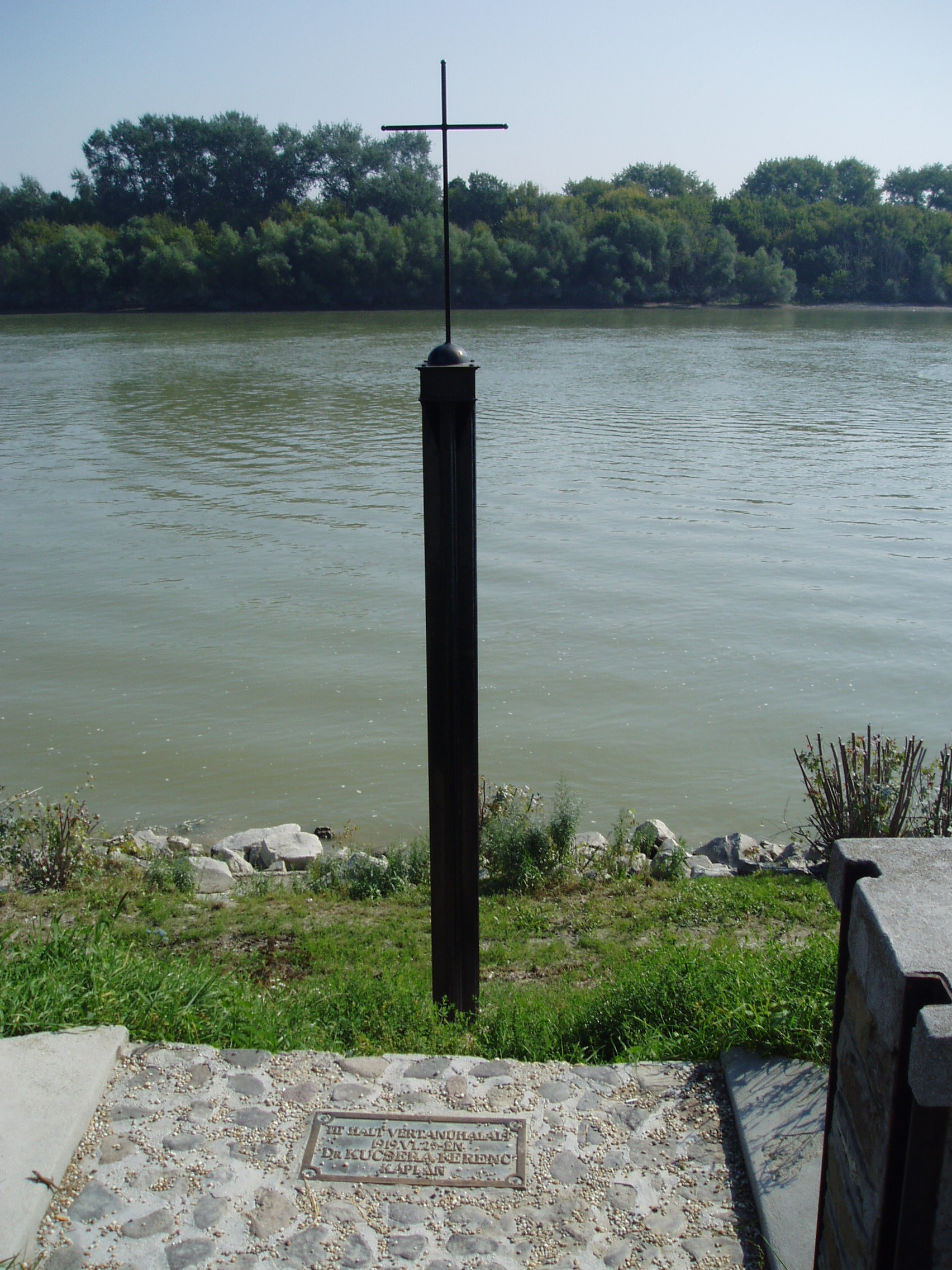 Nyilvános 1777 | 8346 | Szentendre, Dunakorzó: Kucsera Ferenc emlékkereszt | 1919 nyarán ezen a helyen végezték ki Kucsera Ferencet. Dr. Kucsera Ferenc /Léva, 1892 - Szentendre,1919/: A szegény sorsú fiatalembert 1915-ben szentelték pappá és még ebben az évben Szentendrére került mint segédlelkész. A Tanácsköztársaság idején a városban június 24-én a kommunisták elleni szervezett akcióra került sor, amelyhez harangzúgás adta meg a jelet. Ehhez a forradalmárok vádja szerint Kucsera Ferenc adta ki a templom kulcsát, ami pedig nem volt igaz. Mégis halálra ítélték és itt, a Duna parton ki is végezték. A temetőárokban elföldelt holtestét tíz évvel később temették el méltón a Katolikus Kálvária kertjébe. Halálának helyét hamarosan fakereszttel jelölték meg a helybeliek, amelyet az 1950-es években eltüntettek. A ma itt álló kis öntöttvas emlékkeresztet 1993-ban állították. A fénykép 2005 szeptemberében készült. Felh. irod.: Pethő Zsoltné Németh Erika: Szentendre utcanevei: várostörténeti olvasmány . Szentendre, 1996 |