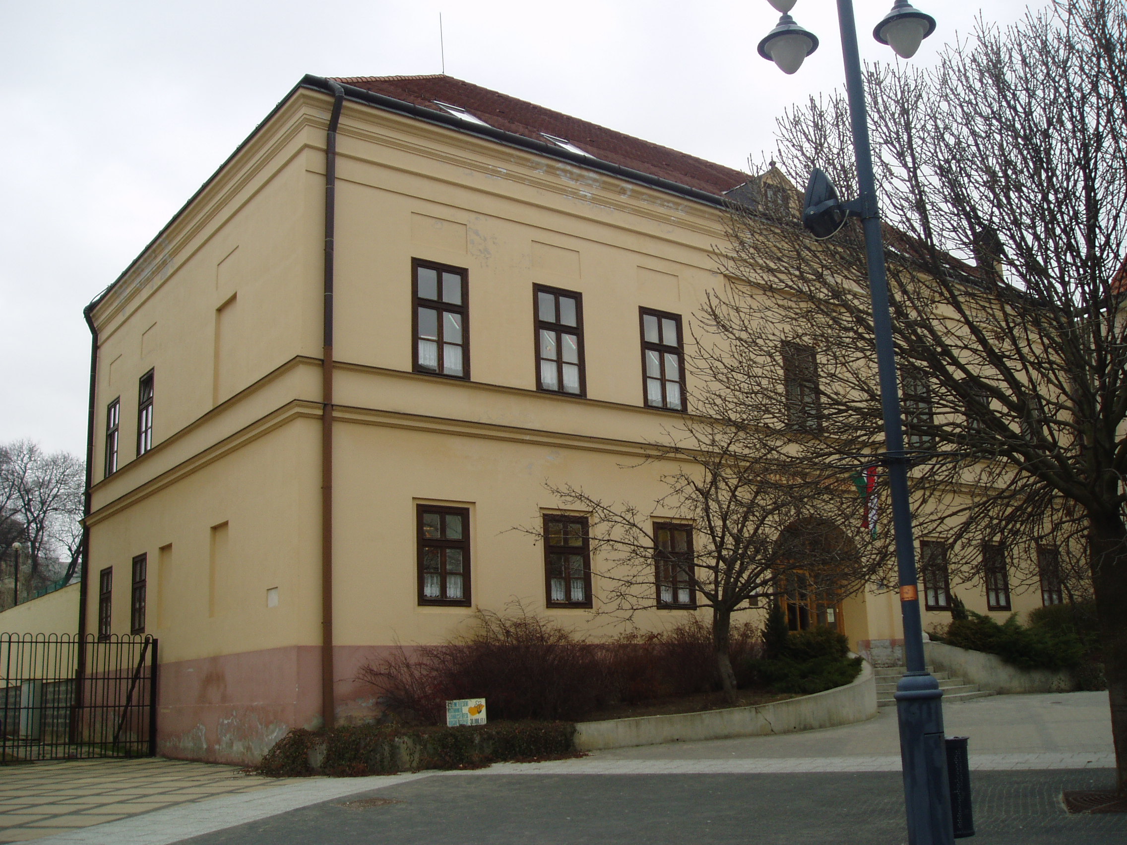 Nyilvános 1069 | 1696 | Kaposvár, Kossuth tér 2. | A volt nemzeti iskola épületének kapuja felett felirat tudósít építésének időpontjáról: "A haza kis polgárainak 1832". Az iskolát az 1880-as években eklektikus stílusban átalakították, de mindig oktatási intézményeknek adott otthont. A fénykép 2006 márciusában készült. Felh. irod.: Látnivalók Somogy megyében. Miskolc, Well-PRess, 2000 /Vendégváró/ www.kaposvar.hu |