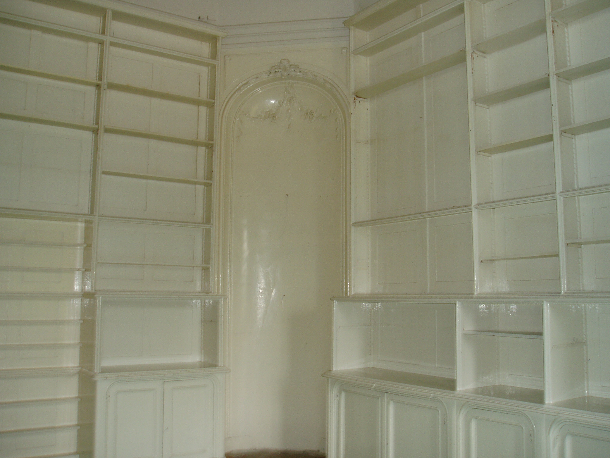 Nyilvános 1572 | 3199 | Tata, Kastély tér: Esterházy-kastély | Az Esterházy–kastély műemléki együttese az Öreg–tó partján, a középkori vár közvetlen szomszédságában áll. Fellner Jakab tervei szerint a XVIII. század második felében épült az Esterházy–család fraknói ága számára, későbarokk stílusban, a kiváló építész egyik legjelentősebb műveként. Fellner a hazai késő barokk, illetve korai klasszicizmus egyik legjelentősebb építésze, munkássága a mai napig meghatározza Tata városképét. Az épület több alkalommal is jelentős szerepet játszott a történelemben. 1809-ben I. Ferenc osztrák császár és felesége, Ludovika ide menekültek Napóleon hadai elől. Hosszú hetekig itt laktak, s az uralkodó itt, az északi szárny toronyszobájában írta alá az ún. Schönbrunni békét. 1897-ben Ferenc József és II. Vilmos német császár látogattak ide egy tatai hadgyakorlat alkalmából. 1921-ben az utolsó magyar király, IV. Károly menekült ide feleségével a balul végződött budaörsi csata után, s itt vették őket őrizetbe. A kastély eredeti berendezését sajnos széthordták, de épségben megmaradtak korabeli belsőépítészeti szerkezetei: kosáríves záródású ablakai, festett ajtói, díszes spalettái, stukkói és festett mennyezetei. A képen az egykori könyvtár (azóta sajnos fehérre mázolt) eredeti bútorzata látható. Sajnos a könyvek is a történelem viharainak áldozatai lettek. A fénykép 2005. júliusában készült. Felh. irod.: Polgárdy Géza: Tatatóváros és környéke kalauza. Az 1939-es kiadás reprintje. Tata, Móricz Zsigmond Városi Könyvtár, 1998 Magyar kastélylexikon 4. Komárom-Esztergom megye kastélyai és kúriái. Bp. Perfect Project, 2003 |
