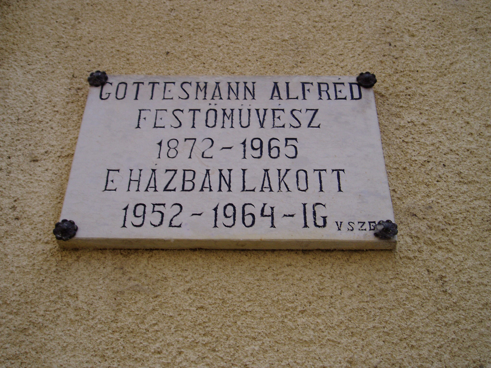 Az épületen lévő emléktábla tanúsága szerint 1952 és 1964 között ebben a házban lakott Gottesmann Alfréd (1872-1965) festőművész.
