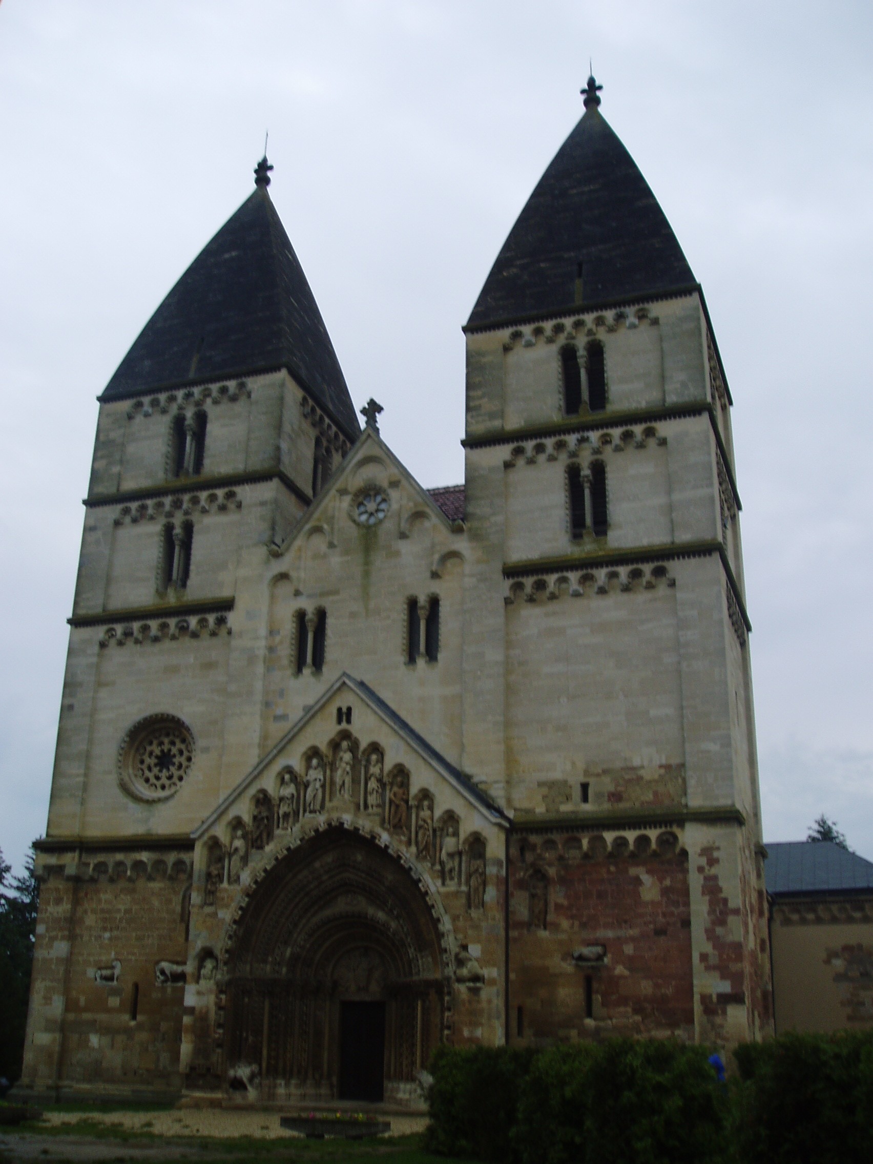 Nyilvános 1529 | 3555 | Ják, Templom | A jáki apátsági templom, az egykori jáki bencés apátság monumentális bazilikája a magyarországi román stílusú építészet kiemelkedő, szinte szimbolikus alkotása. A hazai középkori nemzetségi monostorok egyedülálló épségben fennmaradt képviselője, mely művészi gazdagságával, a táj képébe illeszkedő mesteri elhelyezésével hívja fel magára a figyelmet. A templomot az 1220-as években Jáki Nagy Márton alapította, az első olyan nemes (nobilis), akit oklevélben is már így említenek. Gazdagságáról és hatalmáról is tanúskodik, hogy birtokainak középpontjában kora egyik legmonumentálisabb templomát kezdte el építtetni, hogy majd nevének és nemzetségének méltó emlékeként évszázadokig álljon és uralkodjon a táj felett. A monostor apátja már 1223-tól szerepel az oklevelekben és ismert a templom felszentelésének időpontja is, amely a tatárjárás miatt későbbre húzódott: 1256. május 2. Építtetője a templomot Szent Györgynek, a bizánci egyház lovagszentjének tiszteletére szenteltette fel, akinek képét a főoltár mögötti falra is felfestették. A templom története szorosan kapcsolódik a mellette épült egykori kolostor történetéhez. Tulajdonosai többször is változtak: 1455-ben Elderbach Bertold kapta, majd fia végrendeletileg Bakócz Tamásra hagyta, majd Bakócz örököseié, az Erdődy családé volt. A kolostor életében sorsdöntő volt az 1532-es esztendő. Ekkor a Kőszeget ostromló török a kolostort is megtámadta és a templommal együtt súlyosan megrongálta. A török elvonulása után a szerzetesek még valószínűleg visszatértek, de 1562 után már bizonyosan megszűnt minden kolostori élet, s hamarosan maga az épület is elpusztult. A templom csodálatos módon illik a környező tájba, mesteri elhelyezése miatt már 10-15 km-ről jól látható, mintegy uralja a vidéket. Tömbszerű, zömök sziluettje már messziről felhívja magára a figyelmet. A templom bélletes főkapujának látványa első látásra is ámulattal tölti el a szemlélőt, az egykori építőmester úgyszólván minden díszt ide összpontosított. Mindent elborít a változatos és gazdag díszítés, melyet a geometriai mintákat felhasználó ún. normann díszítőstílus jellemez. A kapuépítmény homlokzatát a magyarországi román stílusú szobrászat ékkövei, Krisztus és a 12 apostol lépcsőzetesen emelkedő életnagyságú szobrai díszítik. Ma már csak másolatok láthatók itt; az eredeti szobrokat a szombathelyi Savaria Múzeumban őrzik (lásd: Szombathely, Kisfaludy u. 9.). A fénykép 2006 júniusában készült. Felh. irod.: Dercsényi Dezső: A jáki templom. Bp. Corvina, 1979 |