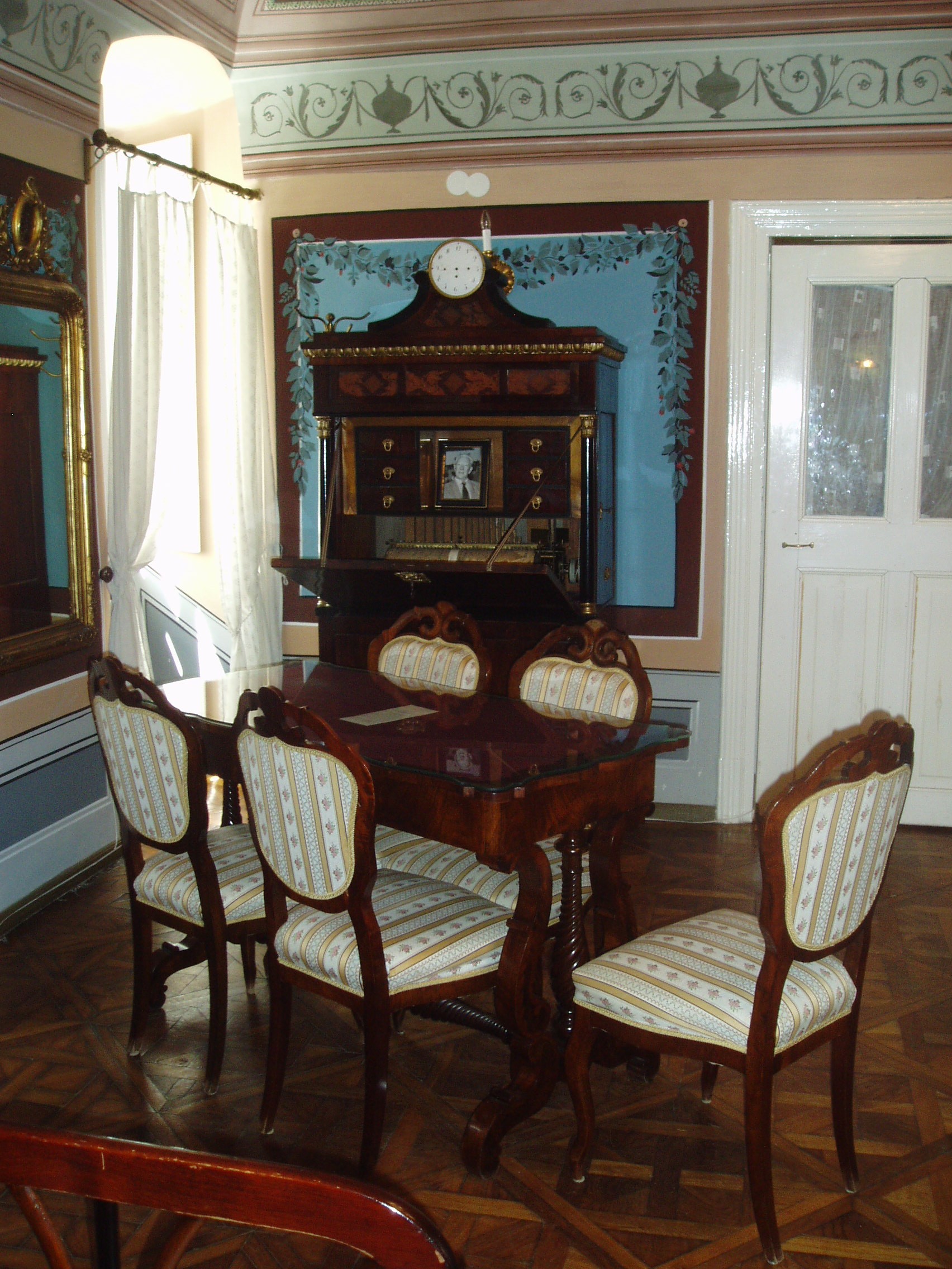 Nyilvános 1455 | 2971 | Gyula, Erkel tér 1. Százéves cukrászda | 1801-ben, a nagy tűzvész után épült az egyemeletes, L alakú, műemlékké nyilvánított ház. Erkel térre néző oldala copf- és empire stílusú, a Jókai utca felőli részen klasszicista elemek is felfedezhetők. Műemléki megítélés szerint "korát és színvonalát tekintve a Dél-Alföld legértékesebb emeletes polgárháza". Földszintjén található a megye legrégibb, s az ország egyik legnevezetesebb műemléki cukrászdája, mely bizonyíthatóan legalább 1840 óta fennáll. XIX. századi tulajdonosáról eredetileg Reinhardt-cukrászdának nevezték. A cukrászda elkerülte az államosítást, megőrizték régi berendezését, s a helyiségek reformkori hangulatát. Az udvar felőli folyosón az egykori szabadkéményes cukrászműhely felszereléseit, eszközeit bemutató kiállítás látható. A fénykép 2007 júliusában készült. Felh. irod.: Czeglédi Imre: Gyula útikalauz. 2. bőv. kiad. Gyula, 1995 |