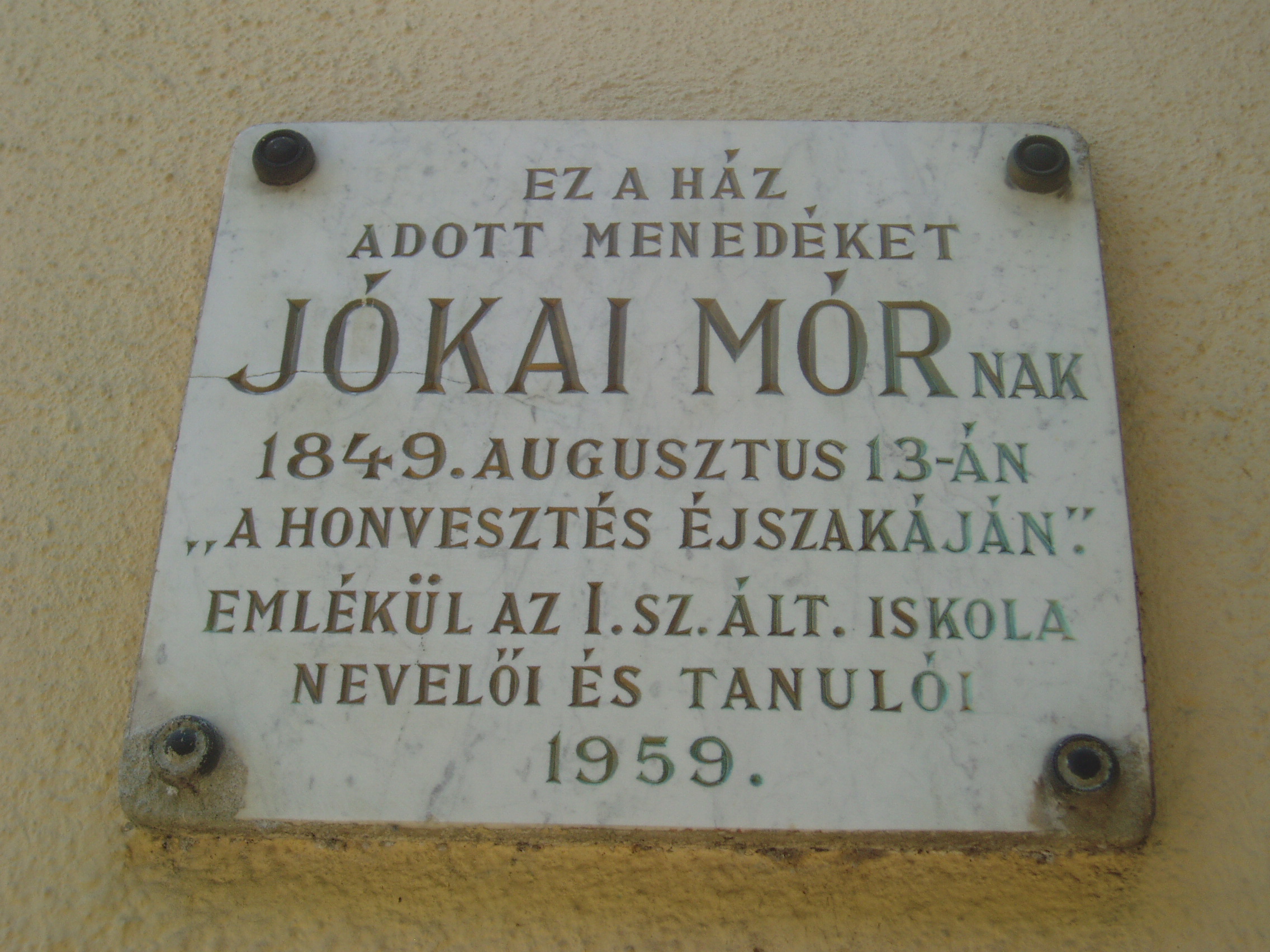 Nyilvános 1059 | 1696 | Gyula, Kossuth utca 30. | Az Almásy-kastélyhoz vezető kőhíddal egyvonalban, az utca túlsó oldalán álló földszintes lakóház egykor Erkel Rezső (Rudolf) vármegyei főorvos, Erkel Ferenc öccse lakása volt, ahol a zeneköltő is gyakran megfordult (János testvérük a szomszédban, a mai 28. szám alatt lakott). Jókai Mór két ízben is megfordult a házban. Először Laborfalvy Rózával 1848. augusztus 29-én kötött házasságuk után voltak a ház vendégei (Erkel Rezső korábban a Nemzeti Színház orvosa volt, onnét ismerték egymást). 1849 júliusában, a szabadságharc vége felé Jókai, Pestről elmenekülve az Erkel család vendégszeretetére bízta feleségét, akivel együtt volt a kor kiváló operaénekesnője, Schodelné Klein Róza is, akik a ház két udvari szobájában húzták meg magukat. Ide tért vissza Jókai feleségéért a világosi fegyverletétel után. Erről szól "Egy napom Gyulán" című szívszorító írása: "Ez volt életem legszomorúbb napja. 1849. augusztus 13-án nyitottam be a gyulai Erkel ház ajtaján ezzel a szóval: nincsen hazánk”. Jókai innét utazott álöltözetben, hamis papírokkal Tardonára. 1860-tól haláláig ebben a házban élt Erkel Ferencné Ádler Adél, miután különvált férjétől. Gyulán hunyt el, sírja a Szentháromság-temetőben van. Az épületen Erkel Rudolf, Ádler Adél és Jókai Mór emlékét márványtáblákon örökítették meg. A fénykép 2007 júliusában készült. Felh. irod.: Czeglédi Imre: Gyula útikalauz. 2. jav., bőv. kiad. Gyula, 1995 |