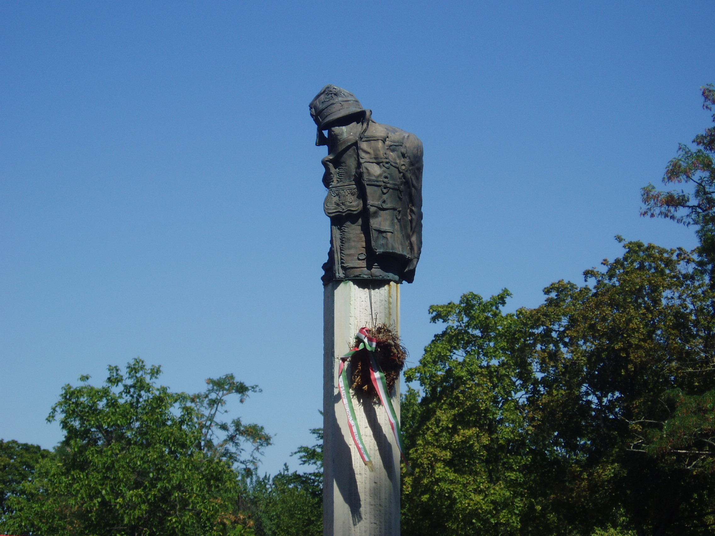 Nyilvános 1060 | 1634 | Gyula, Várkert: Honvédtiszti emlékhely | A szabadságharc végén, 1849 augusztusában szomorú esemény színhelye lett Gyula. A világosi fegyverletételkor a magyar sereg tisztjei megtarthatták oldalfegyvereiket, s az oroszok Sarkadra, majd Gyulára kísérték őket. Az oroszok tüntetően jól bántak a magyar tisztekkel: eltávolították a grófi kastély elől az osztrák őröket, s együtt mentek a Korona vendéglőbe, ahol a cigánnyal a Rákóczi indulót és a Kossuth-nótát huzatták, senki nem gondolt arra, hogy a foglyok valaha is az osztrákok kezébe kerülnek. A mostani Groza park területén elhelyezett fogolytábort alig őrizték, többen polgári ruhát szerezve el is menekültek. A hagyomány szerint az araddi tizenhárom vértanú közül kilenc volt Gyulán: Aulich Lajos, Damjanich János, Kiss Ernő, Knezich Károly, Lahner György, Lázár Vilmos, Leiningen-Westenburg Károly, Nagy-Sándor József, Török Ignác. A tábornokokat magánházaknál szállásolták el, amelyeken ma emléktábláik olvashatók. Közülük csupán Lahner és Damjanich volt köteles a várkapu melletti cellában tölteni az éjszakát. Augusztus 21-én Rüdiger tábornok hozta Paszkievics parancsát, hogy a honvédtiszteket le kell fegyverezni és át kell adni az osztrákoknak. Augusztus 23-án a vár és a kastély közötti téren megkezdődött az 1300 honvédtiszt lefegyverzése. Másnap az oroszok átadták őket az osztrákoknak, akik 200 szekérrel szállították őket Aradra. E szomorú történelmi esemény 140. évfordulója alkalmából alakították ki 1989-ben a vár északi fala mögött az emlékhelyet, Máté István szobrász és Szemerei Márta építész alkotását. A posztamensen álló kilenc szobor az 1849. október 6-án kivégzett kilenc tábornokot szimbolizálja. A fénykép 2007 júliusában készült. Felh. irod.: Czeglédi Imre: Gyula útikalauz. 2. jav., bőv. kiad. Gyula, 1995 |
