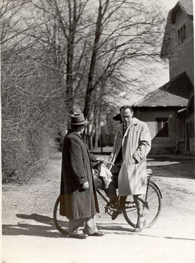 Nyilvános 1621 | 3214 | Vértes Imre tanár úr jellegzetes elgondolkozó pózában látható a Mozikertben, a félig háttal álló kalapos ember – a tanítvány, a képet beküldő dr. Cserfalvi Tamás édesapja – Cserfalvi József. A kép 1954-55-környékén készülhetett. | |