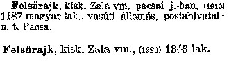 Nyilvános 2305 | 6469 | Felsőrajk | kisk. Zala vm., (1920) 1343 lak. Felsőrajk kisk. Zala vm. pacsai j. -ban, (1910) 1187 magyar lak., vasúti állomás, postahivatal; u. t. Pacsa. Cím: Révai nagy lexikona Alcím: az ismeretek enciklopédiája Kiadás: Budapest : Révai testvérek, [1911]- Kötetei: 1. köt., A - Arany 2. köt., Arány - Beke 3. köt., Béke - Brutto 4. köt., Bratus - Csát 5. köt., Csata - Duc 6. köt., Duc - Etele 7. köt., Stelka - Földöv 8. köt., Földpálya - Gres 9. köt., Gréc - Herold 10. köt., Hérold - Jób 11. köt., Jób - Nontur 12. köt., Kontúr - Lovas 13. köt., Lovas - Mons 14. köt., Mens - Ottó 15. köt., Ottó - Racine 16. köt., Racine - Sodoma 17. köt., Sodoma - Tarján 18. köt., 19. köt., Vár - Zsüri | Kiegészítés Aachen - Beöthy 20. köt., Kiegészítés: Bér - Zsolt ETO jelzet: 03=945.11 Szakjelzet: 030 Cutter: R 62 Nyelv: magyar |