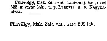 Nyilvános 2283 | 6177 | Füzvölgy kisk. Zala vm. kanizsai j. -ban, (1910) 329 magyar lak., u. p. Langvíz, u. t. Nagykanizsa. Füzvölgy kisk. Zala vm., (1920) 309 lak Cím: Révai nagy lexikona Alcím: az ismeretek enciklopédiája Kiadás: Budapest : Révai testvérek, [1911]- Kötetei: 1. köt., A - Arany 2. köt., Arány - Beke 3. köt., Béke - Brutto 4. köt., Bratus - Csát 5. köt., Csata - Duc 6. köt., Duc - Etele 7. köt., Stelka - Földöv 8. köt., Földpálya - Gres 9. köt., Gréc - Herold 10. köt., Hérold - Jób 11. köt., Jób - Nontur 12. köt., Kontúr - Lovas 13. köt., Lovas - Mons 14. köt., Mens - Ottó 15. köt., Ottó - Racine 16. köt., Racine - Sodoma 17. köt., Sodoma - Tarján 18. köt., 19. köt., Vár - Zsüri | Kiegészítés Aachen - Beöthy 20. köt., Kiegészítés: Bér - Zsolt ETO jelzet: 03=945.11 Szakjelzet: 030 Cutter: R 62 Nyelv: magyar |