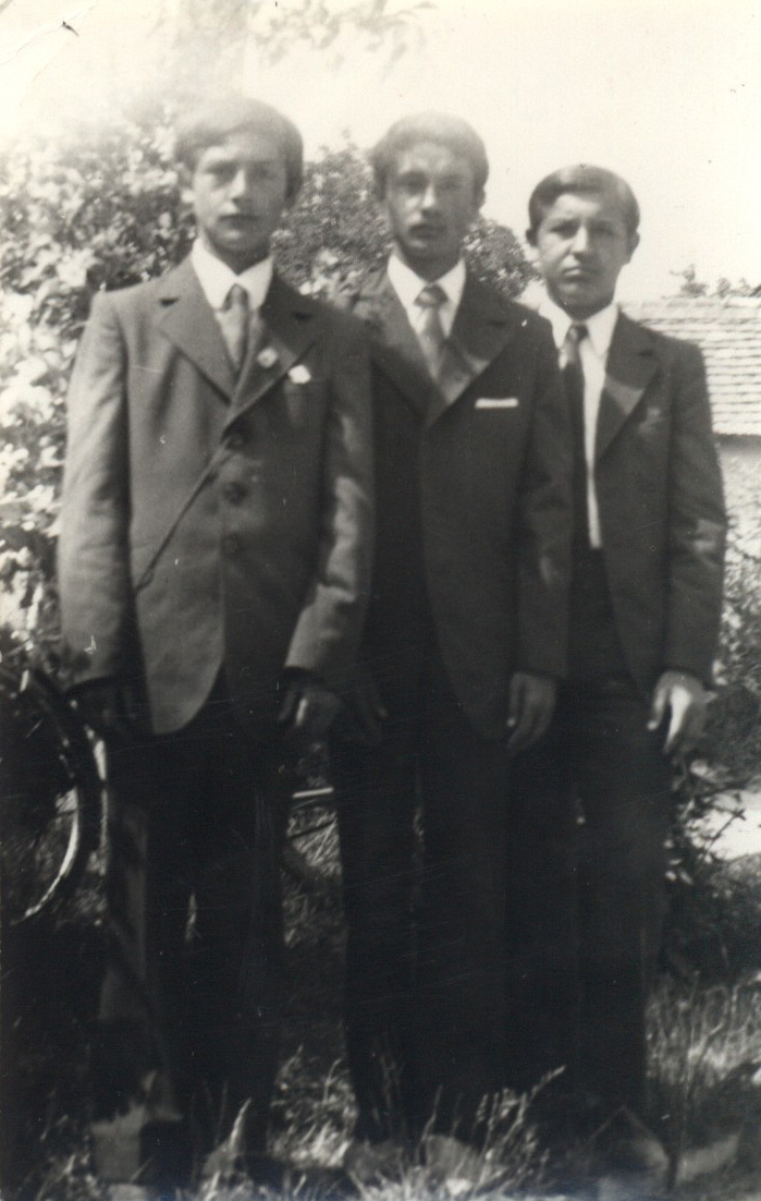 1970-75. Régi iskola a háttérben. Balról Jobbra: Tolnai István, Horváth József, Horváth István.