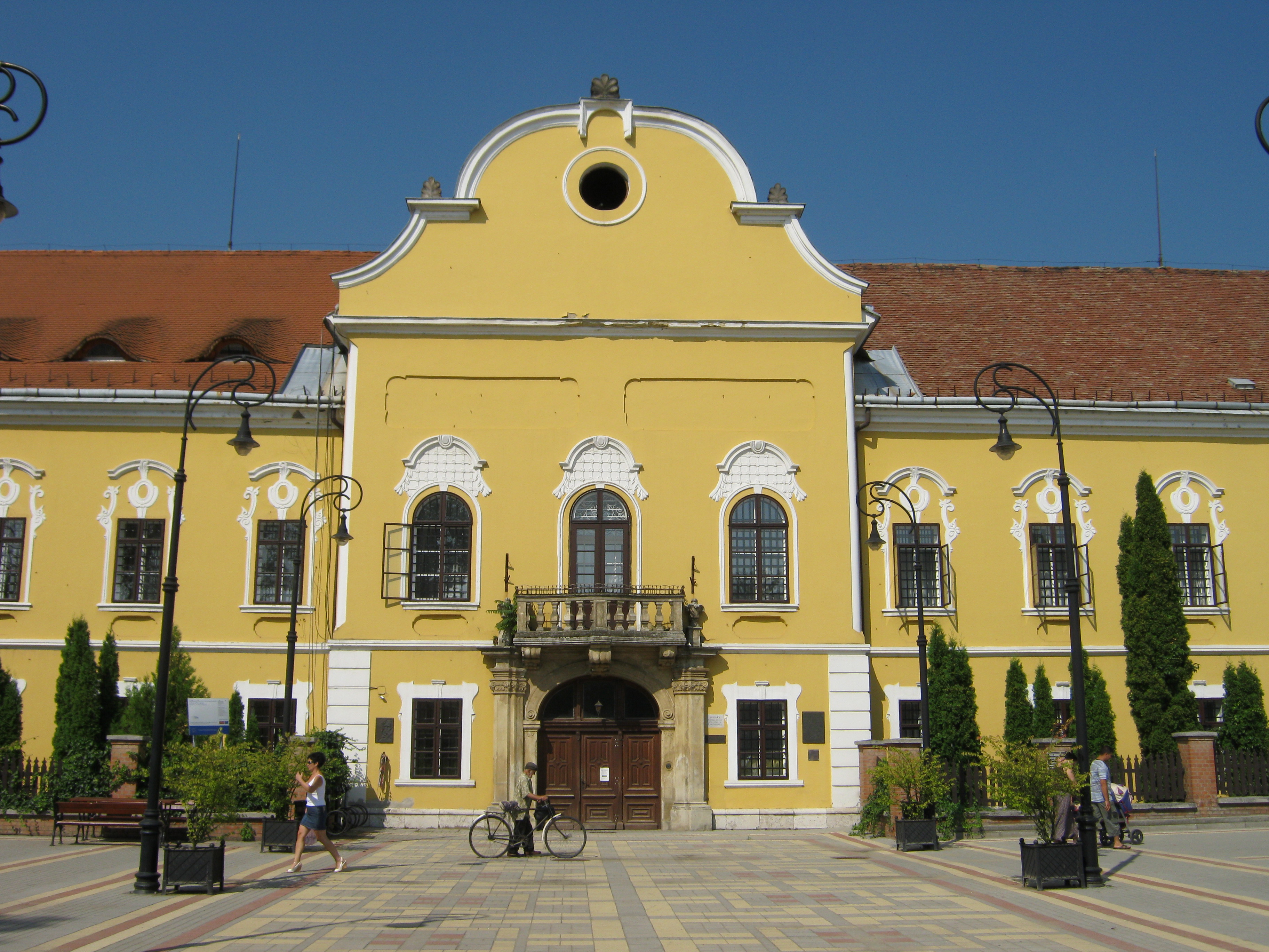 Nyilvános 1139 | 3981 | Nagykálló, Szabadság tér 13. A régi vármegyeháza | Az egyemeletes, négyszögletes belső udvart körbezáró, copfstílusú középület 1769-80 között épült, olasz építészek, az Aprilis testvérek irányítása alatt. Dísztermében 1770 körül készült, szintén copf freskók láthatók. Salvatore Aprilis (aki a sátoraljaújhelyi vármegyeháza építését is vezette) kezdte az építést, majd halála után testvére, Giuseppe Aprilis folytatta azt. Az eredetileg U alakú épületet a XIX. század végén bővítették mai formájára, körülépítve az udvart. A megyeszékhely Nyíregyházára költözése után előbb kórház, majd ideg- és elmegyógyintézet, jelenleg a Szabolcs-Szatmár-Bereg Megyei Önkormányzat Pszichiátriai Szakkórháza működik benne. Felh. irod.: Harsányi Gézáné: Kálló kincsei. Nagykálló, 2007 www.nagykallo.net A fénykép 2010 augusztus elején készült. |