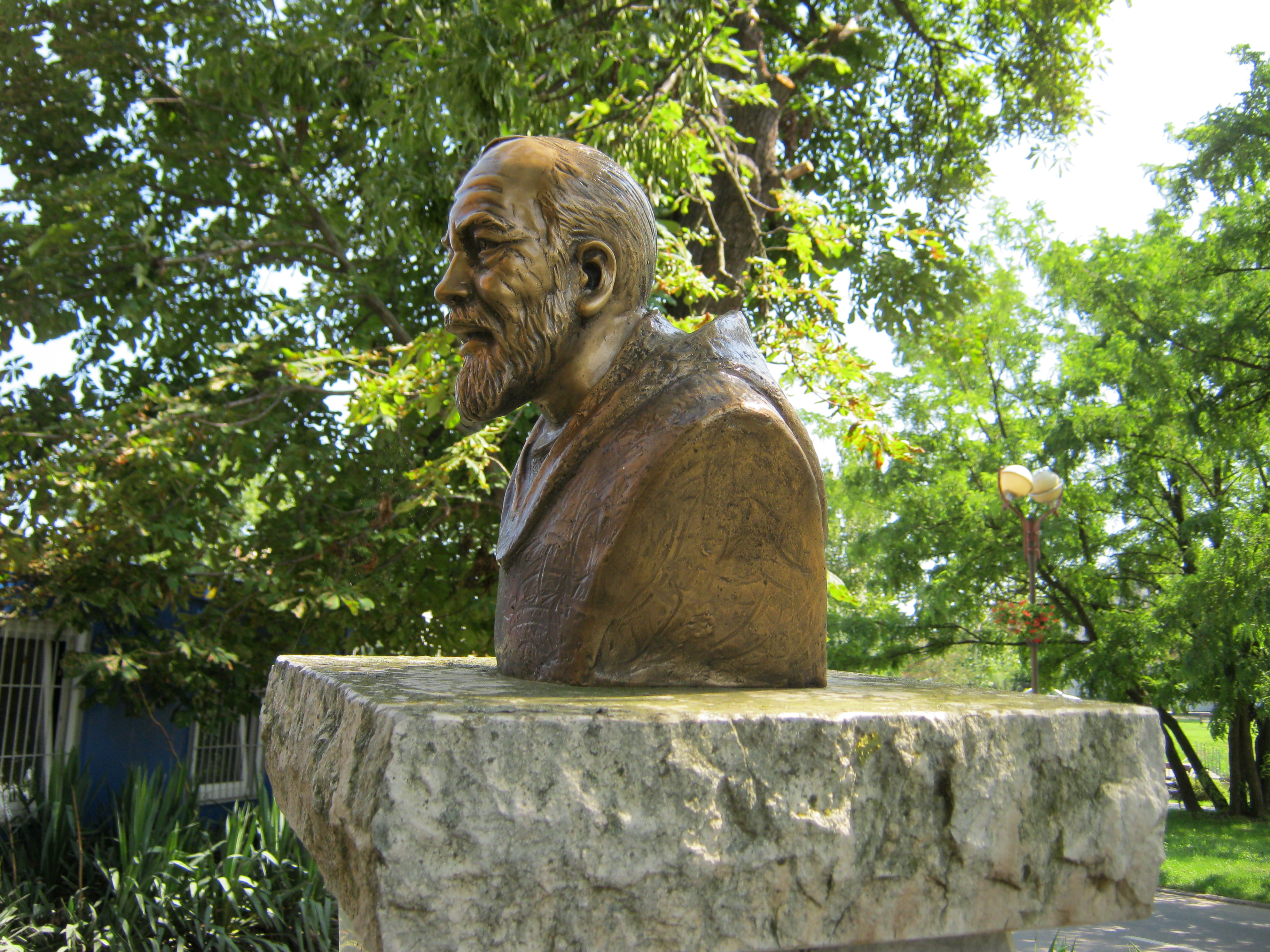 Nyilvános 1117 | 2144 | Nyírbátor, Károlyi utca 19. előtt: Kelemen Didák mellszobra | Nyírbátor jelentős műemléke, a római katolikus (korábban minorita) templom előtt állították fel Kelemen Didák (1683-1744) mellszobrát. A minorita szerzetes 1720-ban az általa újra-alapított nyírbátori kolostor főnöke lett. Ebben a minőségében ő építtette a ma a város múzeumának helyet adó kolostort és állíttatta helyre a XVI. század végén súlyosan megsérült templomot. Számos iskolát és templomot épített, s a szegények nagy pártfogója volt. Irodalmi munkássága is jelentős, 13 kötetnyi könyv szerzője. Közül a legkiemelkedőbbnek Búzafejek című prédikációskötetét tartják, amely egyházi, irodalmi és nyelvészeti szempontból egyaránt értékes eleme a magyar kultúrának. Felh. irod.: Látnivalók Szabolcs-Szatmár-Bereg vármegyében. Miskolc, Well-PRess, 1999 Bogdan Adamczyk: Isten Szolgálja Kelemen Didák (1683-1744) hite és tevékeny szeretete korában, a történelmi Magyarországon. = http://mkdsz.hu/content/view/18338/210/ A fénykép 2010 augusztus elején készült. |