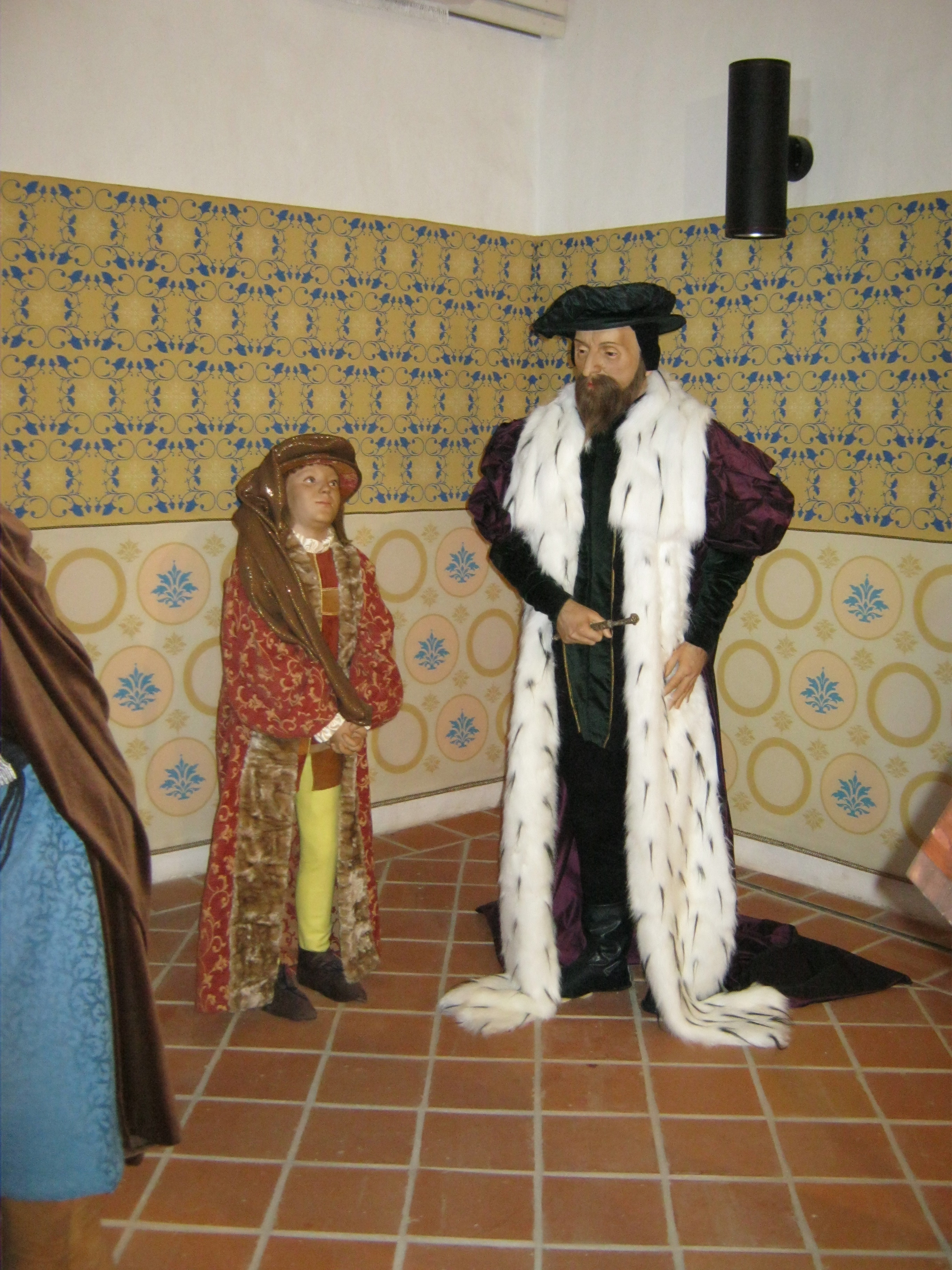 Nyilvános 1013 | 1417 | Nyírbátor, Vár utca 1. Báthori várkastély | A Báthoriak várkastélyának többször átalakított egyetlen megmaradt épületét a közelmúltban állították helyre. Pincéjében reneszánsz étterem látogatható, földszintjén és emeletén a Báthori Panoptikum 45 élethű és korhű viaszfigurában mutatja be érzékletesen a jeles nemesi család és Nyírbátor történetét. A figurák tervezője és készítője Megyeri János szobrászművész. A megtekintést olvasható és hallgatható kalauzolás kíséri. A kiállítást a kenyérmezei csata 530. évfordulóján, 2009.október 13-án adták át. Az 1479-ben a törökkel vívott csata egyik hőse Báthori István volt. A képen a kis János Zsigmond és I. Ferdinánd király figurái. Felh. irod.: Látnivalók Szabolcs-Szatmár-Bereg megyében. Miskolc, Well-PRess, 1999 www.bathorivarkastely.hu A fénykép 2010 augusztus elején készült. |