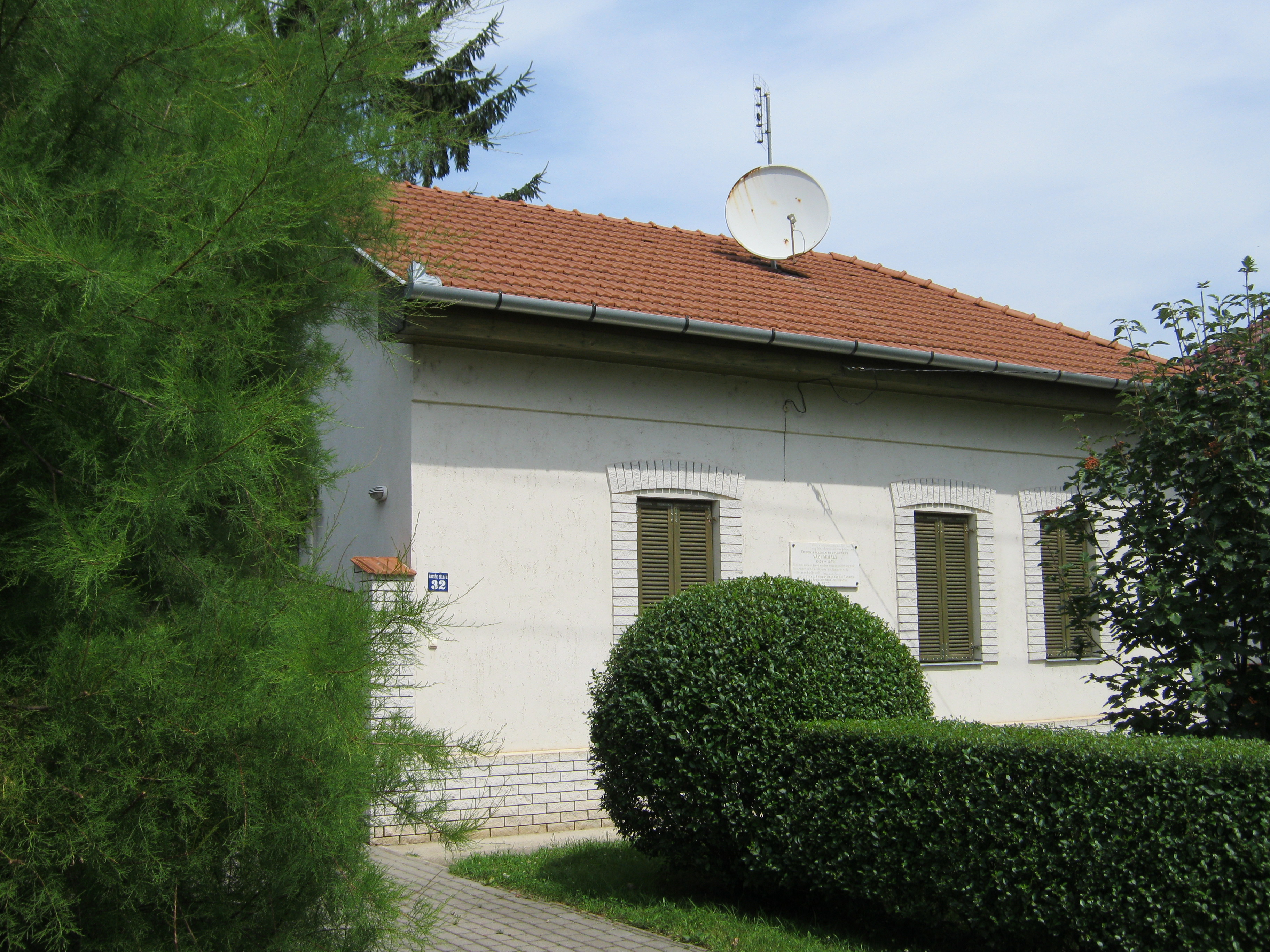Nyilvános 1064 | 1417 | Nyíregyháza, Bartók Béla utca 32. | Mielőtt a Debrecen felé vezető műút átszelné a vasútvonalat, Nyíregyháza központjától távol, a Bartók Béla utcában ma is álló családi házon emléktáblát találunk: "Ebben a házban nevelkedett Váci Mihály". A Szeder utca 59. alatt egykor álló zsúptetős cselédházban született (oda sajnos nem jutottam el, a mai épületet ott is emléktábla jelöli). Életrajzírója, Kovács Sándor Iván így jellemzi gyermekkori környezetét: "Nincs még egy költőnk Illyés Gyula óta, akinek indulását oly meghatározó erővel befolyásolná szülőföld és családi környezet, mint Váci Mihályét. Szülőföldjéről egyszerre hozta magával a nyírségi tájak és a szociális nyomorúság élményét; a tébécé halálos fenyegetésén kívül egyedül ezt jussolta 'névtelen kis cseléd' őseitől, s költészetének és prózájának mindvégig éltető közege ez a kettős inspiráció." A költő 15 éves koráig lakott egy szobában csont-tuberkulózisban szenvedő nagyanyjával. Hat testvére közül csak egy maradt életben. Ebből a közegből származva végezte el a tanítóképzőt (lásd: Nyíregyháza, Széchenyi u. 6.), majd pályáját tanyasi tanítóként kezdte. Váci Mihály nyíregyházi emlékhelyeiről kiváló összefoglalás található itt (2010. 08. 29.): www.vacimihalykor.hu/siremlekek/nyiregyhaza.htm Felh. irod.: Kovács Sándor Iván: Váci Mihály. Bp. Akadémiai Kiadó, 1972 A fénykép 2010 augusztus elején készült. |