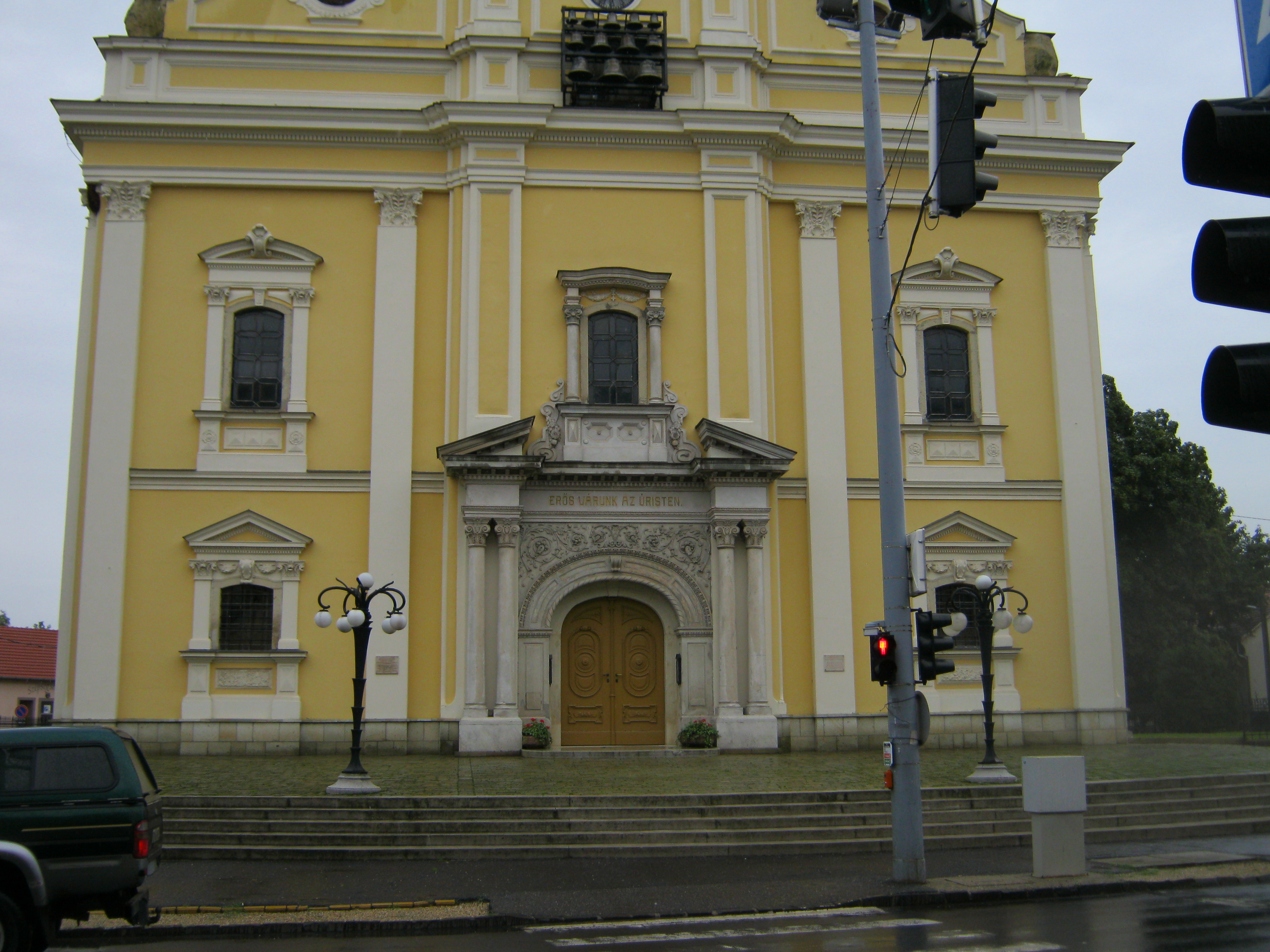 Nyilvános 1037 | 1438 | Nyíregyháza, Luther tér 1. Evangélikus templom | A késő barokk épület tervezője Giuseppe Aprilis volt, alapkövét 1784-ben rakták le, s két év múlva fel is szentelhették. Építtetője az 1750-es évek közepétől Nyíregyházára települt szlovák ajkú, evangélikus hitvallású lakosság volt. Belső díszítőfestése a nyíregyházi Benczúr Gyula tervei alapján készült. 1910-ből származó orgonája Rieger Ottó műve. Az 1928-ban készült harangjáték a Luther Márton által írt "Jövel Szentlélek Úristen" kezdetű ének első két sorát játssza. A fénykép 2010 augusztus elején készült. Felh. irod.: Látnivalók Szabolcs-Szatmár-Bereg megyében. Miskolc, Well-PRess, 1999 |
